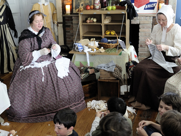 Valerie Hamill, left, tearing bandages in Myers Inn |