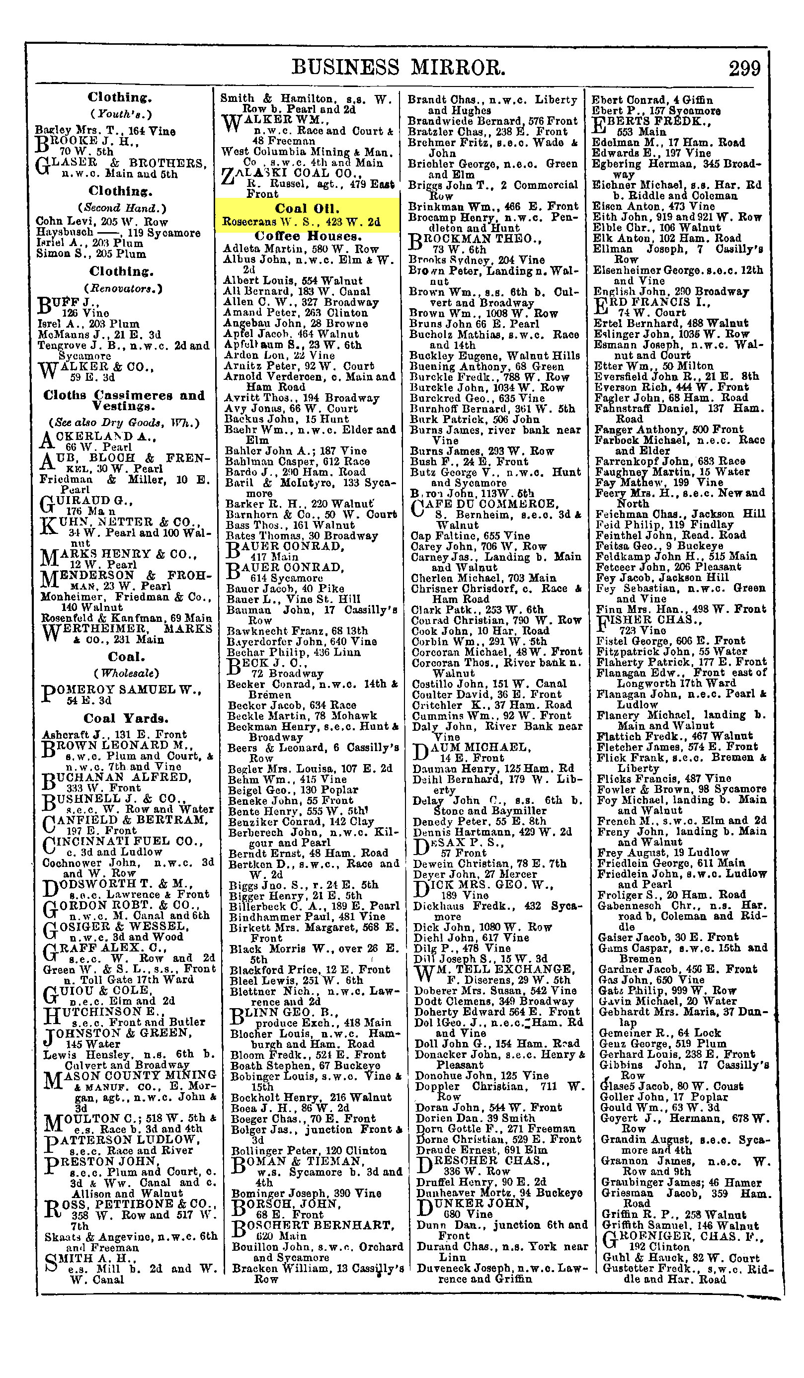 W. S. Rosecrans is the only manufacturer of Coal Oil, 423 W. 2nd Street |