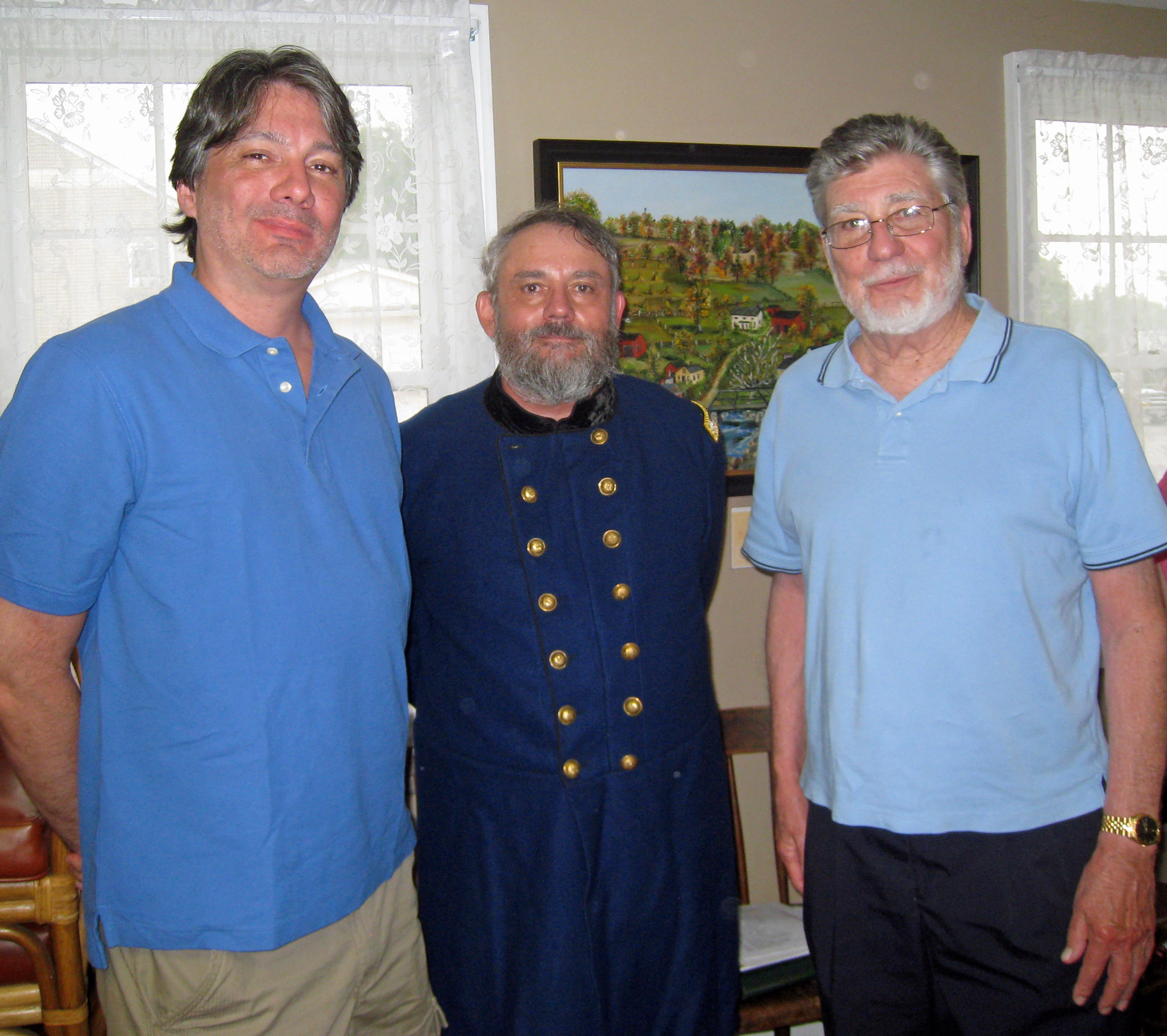 Chuck Grapes as Colonel Frambes with two of the Colonel's Descendants, Jonathan Frambes, left, and Jonathan's father Jack Frambes on the right, following Grapes first person presention on June 30, 2011 |