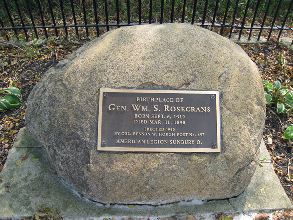 | About 1.2 miles west of Route 61 on Rosecrans Road is a roadside monument marking the birth home of William Starke Rosecrans, a Major General by the end of the Civil War. The house is gone but the spot is marked for posterity. | ||