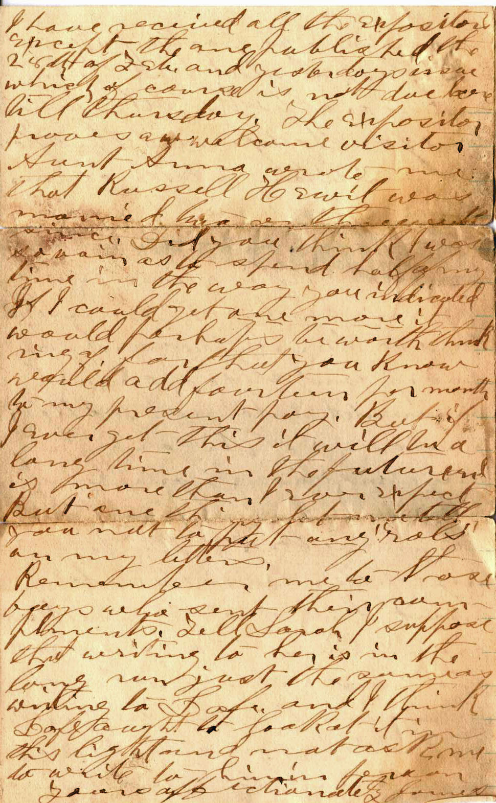 Letter from James to his Sister in care of Dr. James P. Streeter Allegan, Michigan