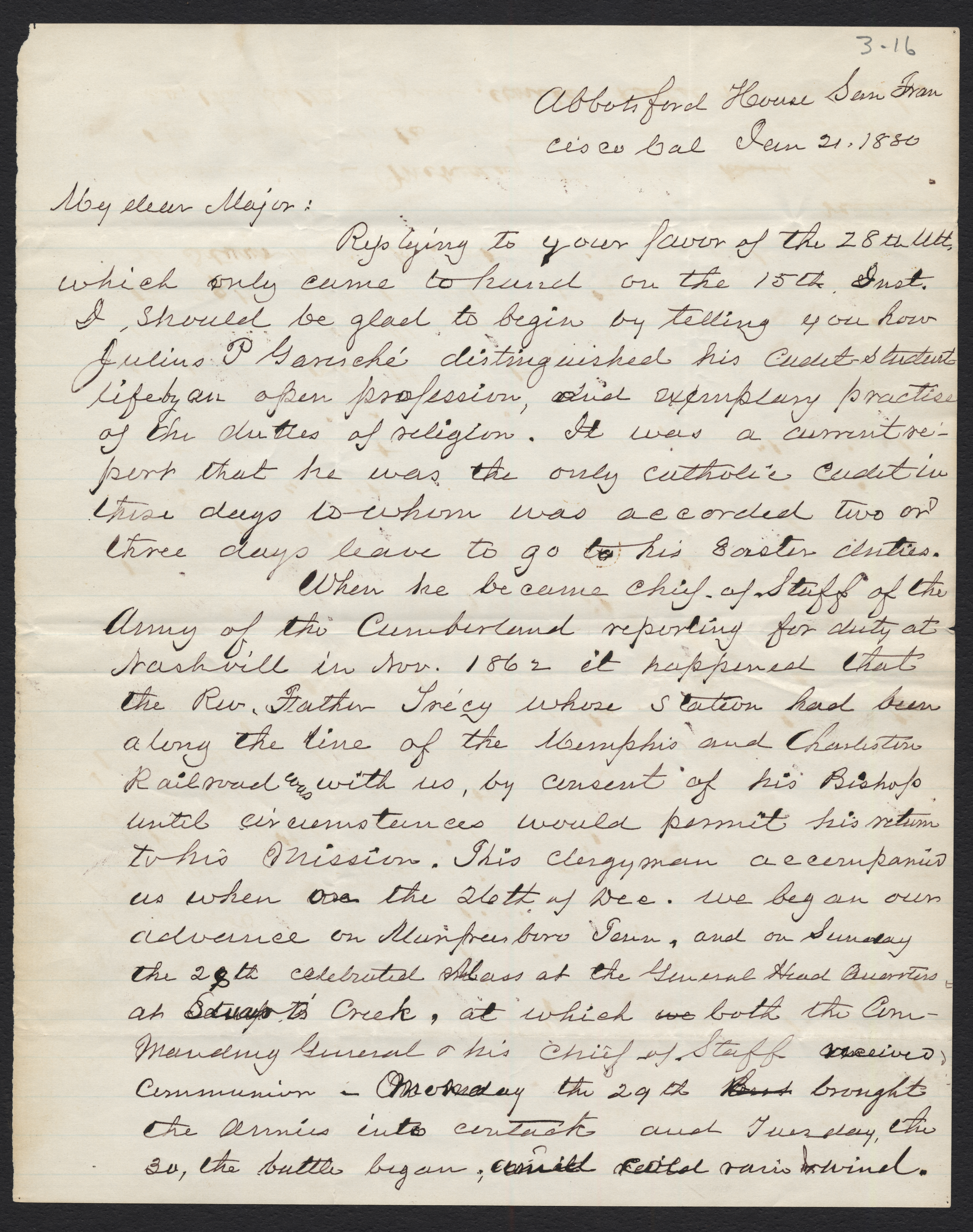 Julius Garesche Return to General Rosecrans |