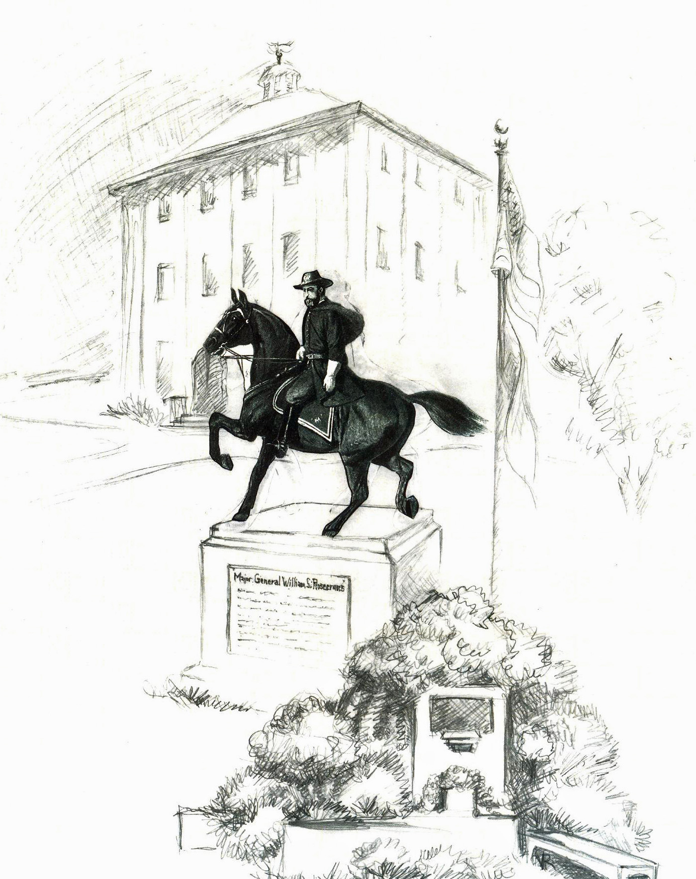 Drawing by Virginia Rodgers and Tom Paul showing placement of proposed statue.