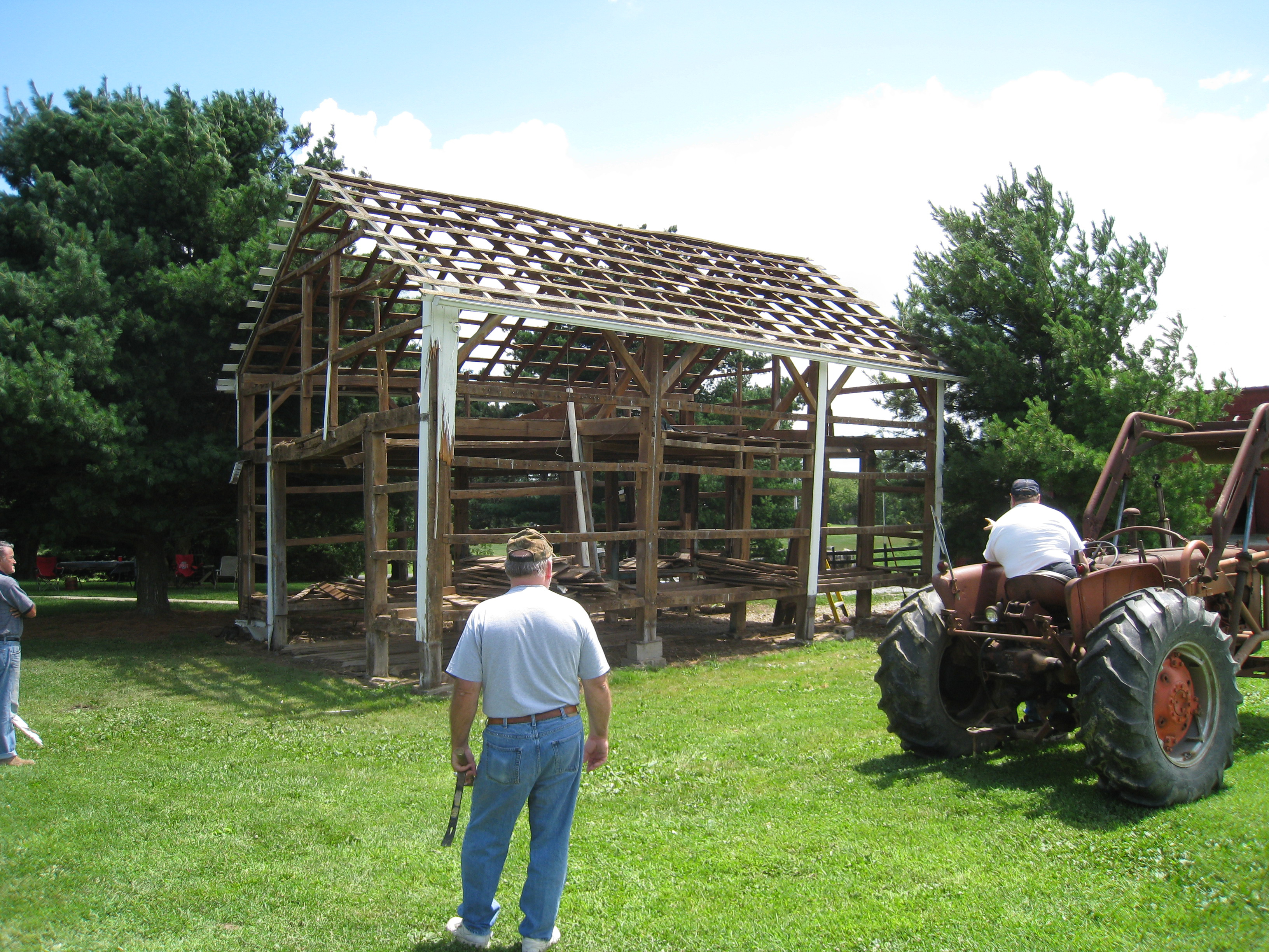 All through the night the barn creaked and cracked. It was definitely leaning more than the day before. It soon became unsafe so the men decided to help it down. Rick used a 1961 Allis Chalmers for the task |