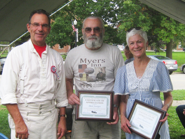 President Damon Bower with honorees Suzanne Allen in left photo, Dick Yoerger and Janet MacKenzie. above |