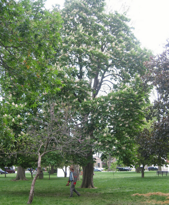 During the early years of the town, all trees were removed from the square and it was fenced fro grazing livestock. Just as in Conrad Richter's novels, The Trees, The Fields and The Town, the residents of the community began to miss the trees. The village council as Nathan Marble, local carpenter, to plant trees on the square. He did so putting the in rings of 8 on each of the quadrants of the square. He selected trees representative of the large native trees growing in the area when the settlers founded the town. The American Chestnut shown above is believed to be one of his trees. The trees were maintained in a three year cycle: one year the trees were drastically pruned to remove the weight and the second the trees were fed. All three years the trees were pruned of suckers, ringed and mulched by volunteers including Girl Scouts and Boy Scouts in May. The village provided mulch from supply they made from leaves and brush picked up around town. The Marble Tree Fund operated on donations from the Flea Markets, the big users of the square, and individuals. It operated until the village took over the care of the trees in the late 1980's. |