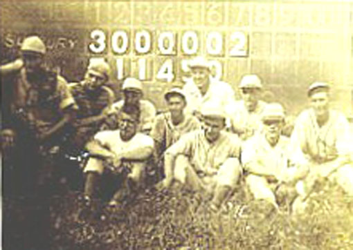 Cobb Farris Catcher, Lauris C. Bennet, manager Middle Row: Dick DeVore, first baseman,; Dick Hoke, shortstop; Doc Bricker, short stop; Hugh strider, pitcher; Howard Bricker, second base Front Row: Byron Hoke, pitcher; Bob Hoke, left field; Bob Smith, third base |