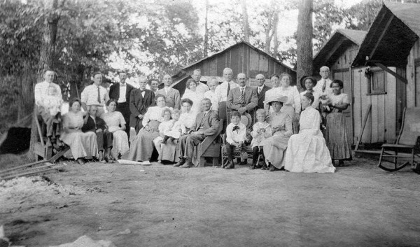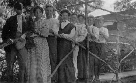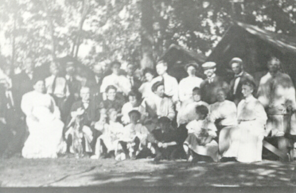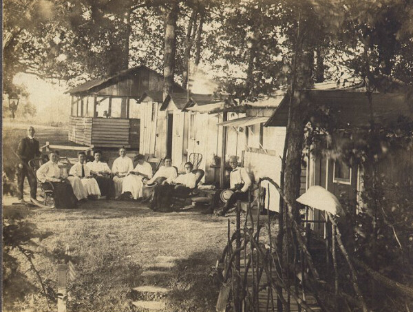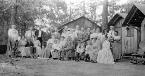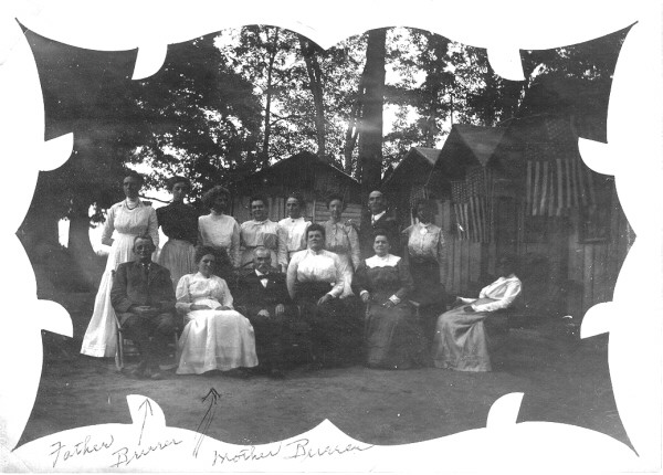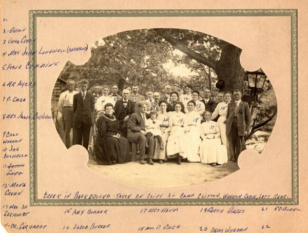 Magazine Club Members at Camp Clifton | The Burrers at Camp Clifton July 1909 Mr. and Mrs. G. J. Burrer, Mr. and Mrs. Parker Burrer, Mr. and Mrs. K. O. Burrer, Rudolph Burrer , Gordon Burrer |