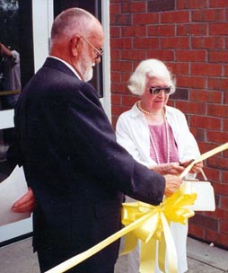 ![]() Trustee President Ben Hart and Former Librarian Dilly Burrer for whom Burrer drive was named, cut the ribbon to open the new library. |