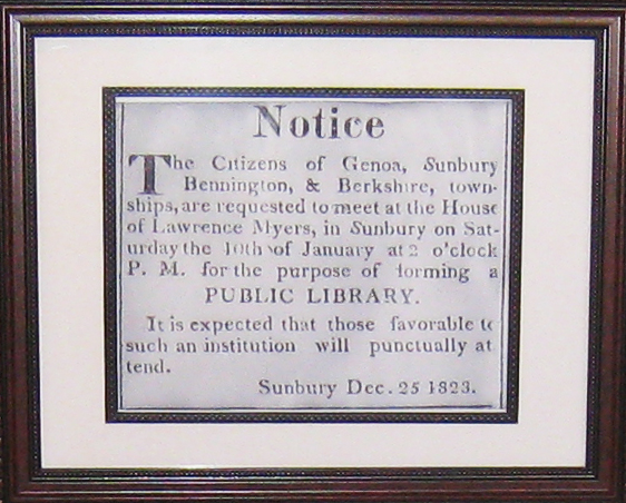 start a library on December 25, 1823 by putting a NOTICE which ran