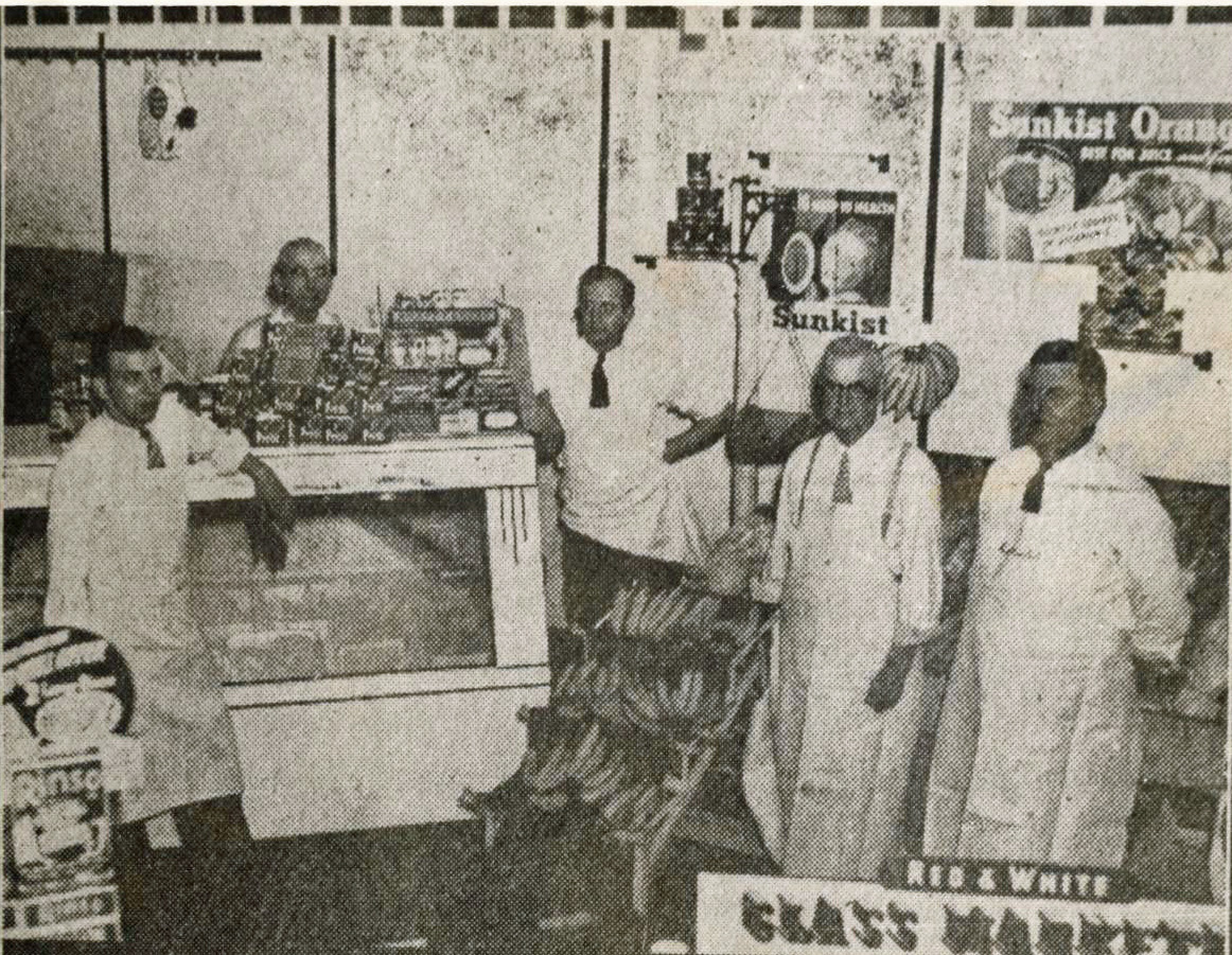 Red and White Store was on the corner with Sunbury Electric Shop sharing the other half of the Blakely & Williams Building. The building was destroyed by fire in 1956. | ||
