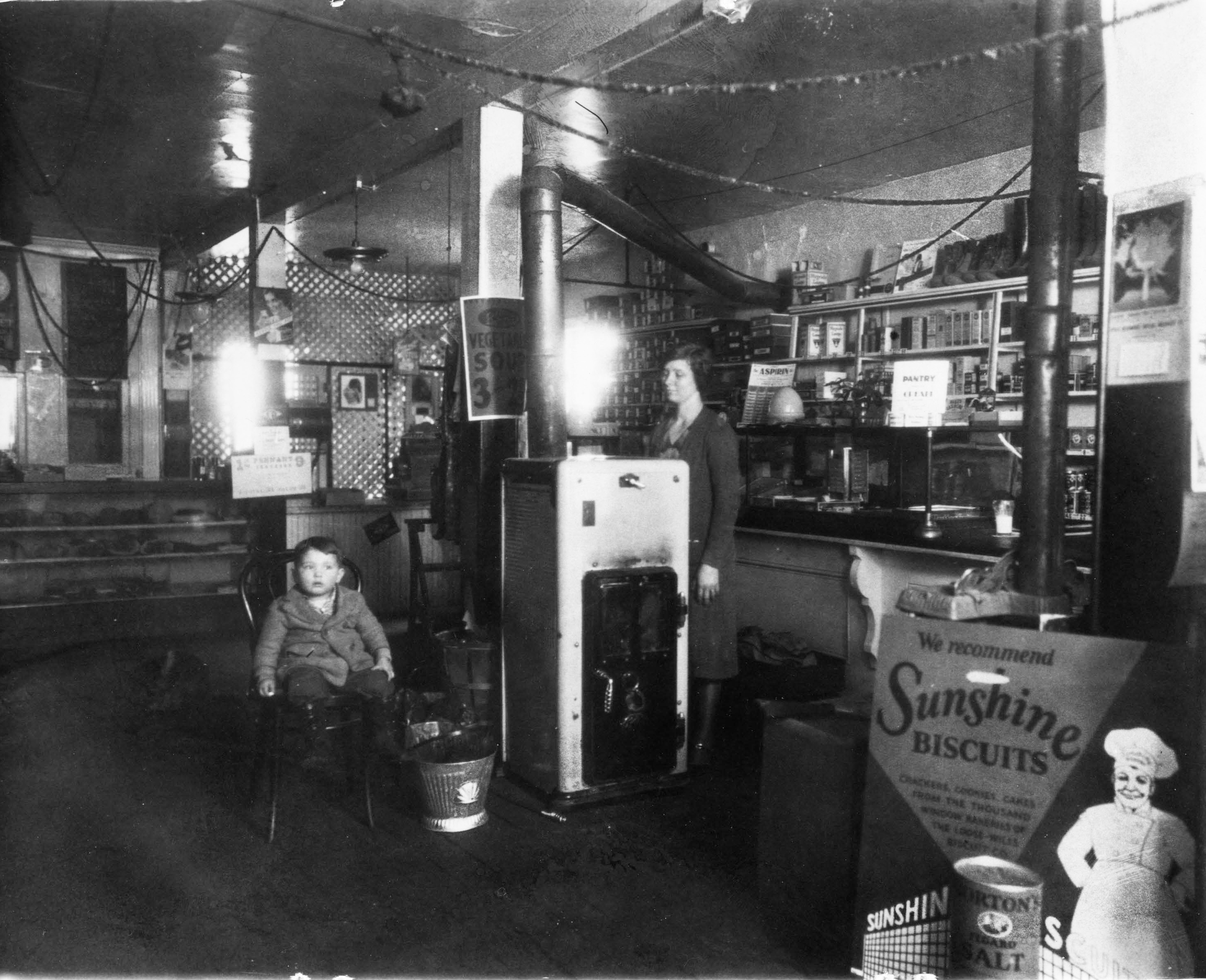 Harold "Cobb" Farris is seated in his father's grocery in December 1931. His mother was pregnant with his sister, Barbara, who was born in January 1932. Christmas decorations are up which didn't happen until December. Cobb, who got his nickname when a classmate declared him "tough as a cobb" was born in Columbus in the late 1920's. His father worked for Timken. During the depression, his father was laid off so the family moved to Galena where an aunt ran a tavern in the early 20's during prohibition. In the mid 1930's Mr. Farris was called back to work at Timken and the family moved back to Columbus. In 1941 Timken let his father go and the family made a final move to Galena. |