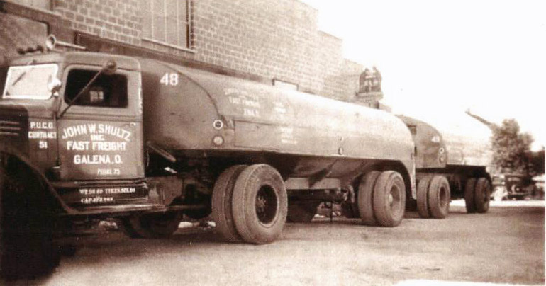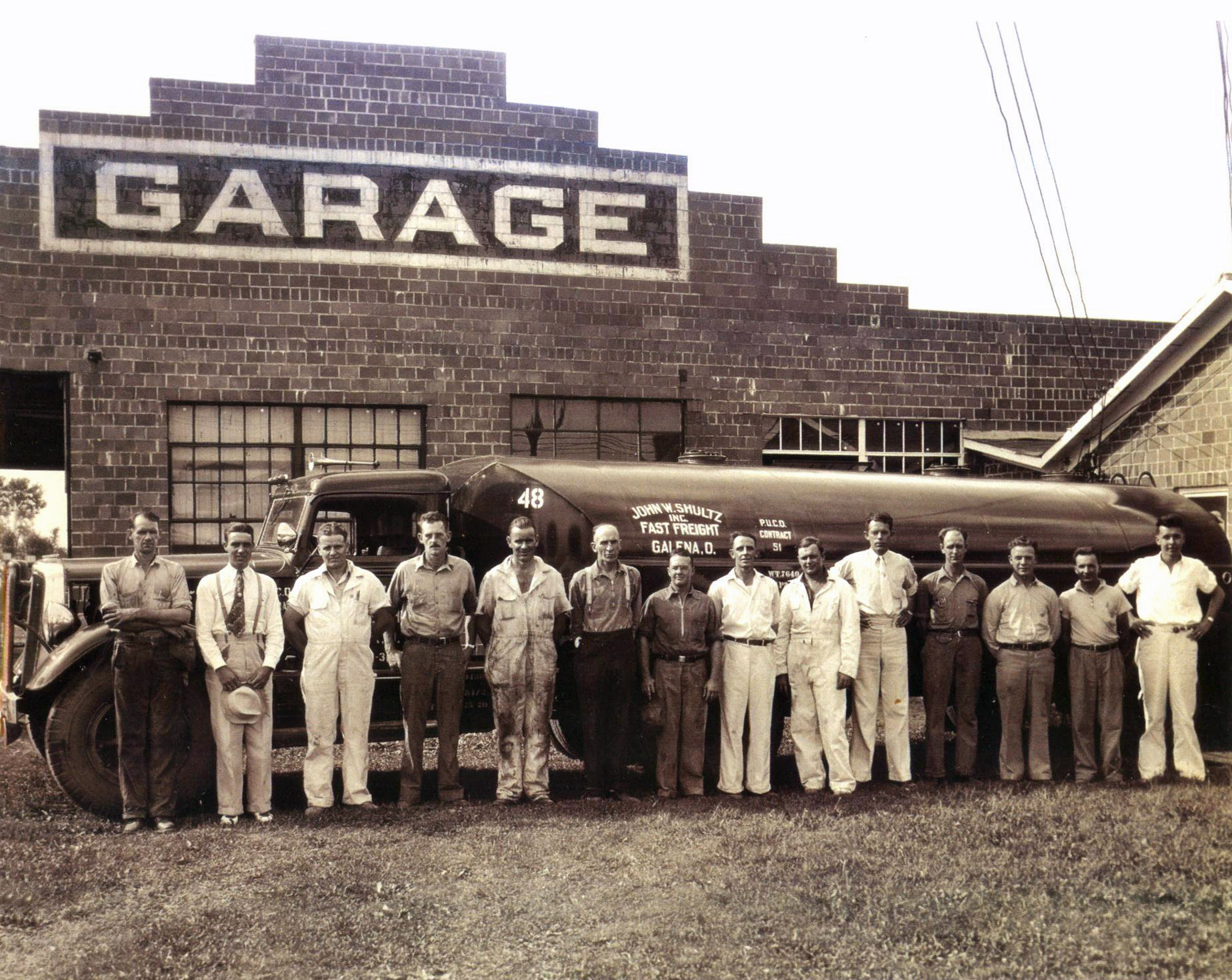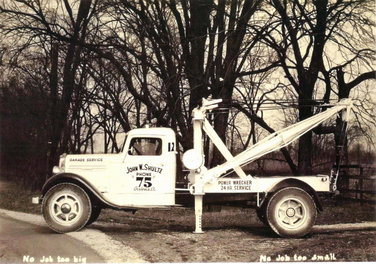 Meanwhile John's wrecker led to a contract with Greyhound to haul buses from various cities throughout Ohio to Columbus for repair. Seventeen of Shultz' employees were drafted during WWII.
