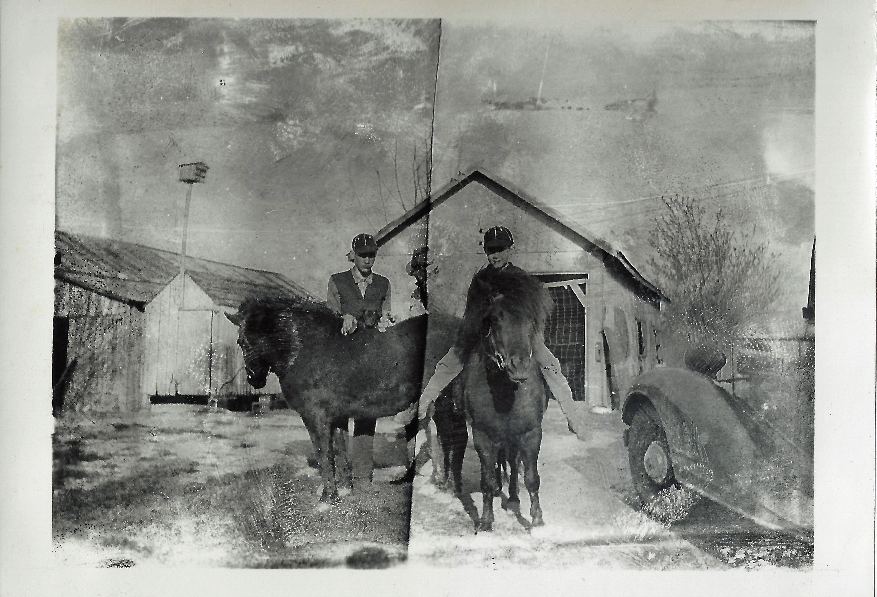 From left is William Paul Mickle, age 17, Scott Cecil Mickle, age 7, sons of Lester Mickle. The boys are on horses they bought May 20, 1939. |