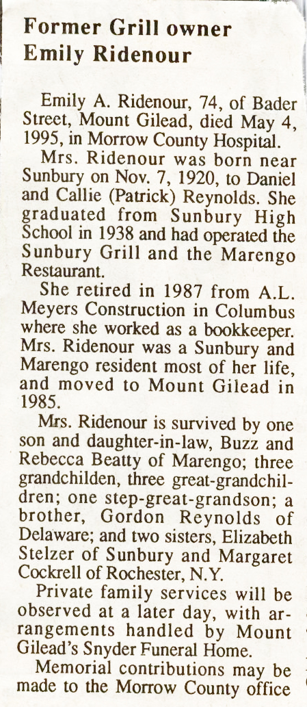 Mrs. Ridenour also worked at the Red & White Store when it burned in 1956 |