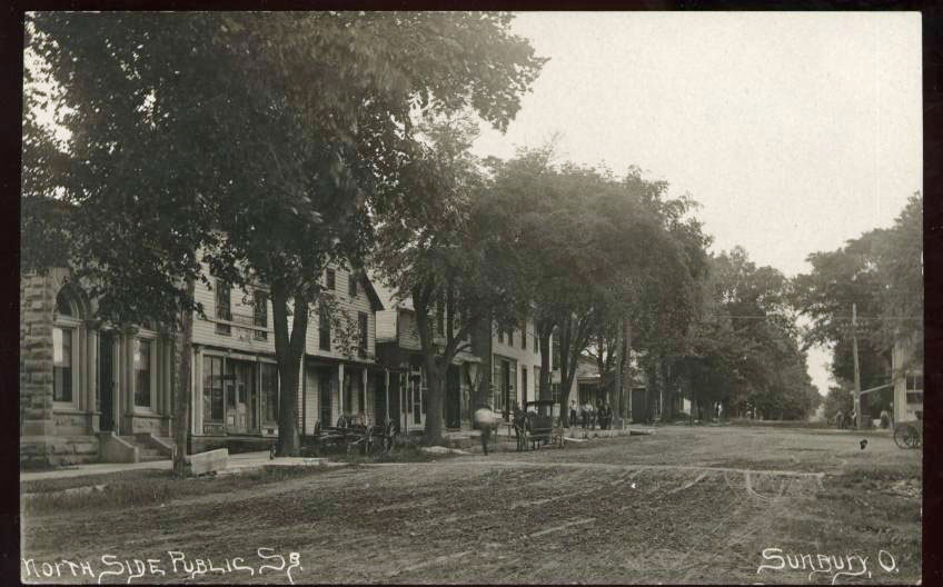 Left to right: Farmer's Bank, The Sunbury News, Benoy Building, (in 2010 Whitney Insurance, Sunbury Grill) the Patrick Building |