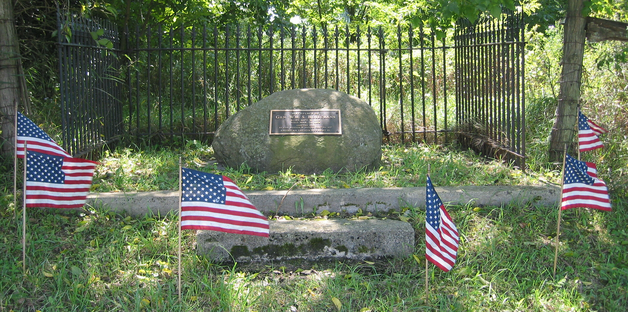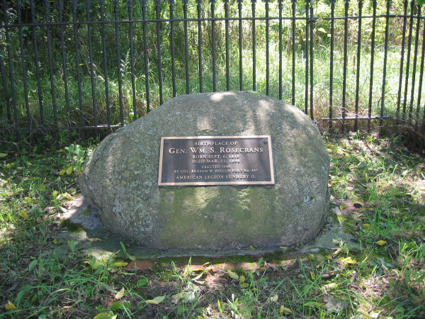 William Starke Rosecrans was born in Kingston Township September 6, 1819. His paternal ancestors came from Amsterdam and settled near Wilkesbarre, PA. The name was originally spelled Rosenkranz which meant Crown or Wreath of Roses. William's grandfather Dr. Daniel Rosecrans married Catherine Cole in 1760 and after her death, Truthful Wilcox. He served as a Captain in a Goshen, NY, 6th Company regiment. In 1809 John Rosecrans (his four sons, Abraham, Jacob, Isaac and John Jr.) and Dr. Daniel Rosecrans, his wife Thankful, and his four sons, Nathaniel, Jacob, Perlemas and Crandall, settled along the Little Walnut Creek in Kingston Township. Dr. Rosecrans became Kingston's first Justice of the Peace. In 1813 he moved south on Taylor Run. William's father Crandall Rosecrans and his wife Jemima Hopkins (relative to Stephen Hopkins who signed the declaration of independence) lived on 160 acres next to Dr. Daniel's farm on Taylor Run. Their first son, Chauncey, born in 1817 died in infancy. William was born in 1819. It is said his father had been an admirer of General John Stark and hence his middle name. However, the Stark families were prominent neighbors in Kingston and Porter Townships so the name may have come from them. Many members of his Uncle John's family are buried in the Stark Cemetery. At any rate the extra 'e' was added to William's name. In 1821, the family moved to Homer, Ohio, where the family continued to grow to include Charles Wesley (1822) who became a farmer in Iowa, and Sylvester (1827-1878) who became a Catholic Bishop in Columbus. Crandall managed a village tavern, general store and farmed. Although he did not belong to a particular religious denomination he was very religious and a strong patriot. William attended a log school for a few months each year. In 1833 a Lancaster merchant, George Arnold, opened a general country store in Utica, a few miles from Homer. William became a clerk in the store and when Arnold moved the store to Mansfield, William moved with him. Here one day William was the driver for T. W. Bartley, future Supreme Court Judge of Ohio, on a trip to Columbus. Bartley enjoyed the trip so much. he encouraged him to get an education. Rosecrans and his father began a correspondence with their congressman and secured an appointment to West Point. William spent time at Kenyon College to prepare for the West Point examination and entered the school in 1837. When he graduated in 1842 he was 5th in general merit and 3rd in mathematics. Anna Elizabeth Hageman, of New York, was a house guest of Susan Bailey, daughter of professor Jacob Bailey, for the West Point graduation. Graduates Rosecrans and Gustavus Smith were invited to walk them to the Crow's nest, a local scenic spot. From then on William was in love with Annie. They married August 24 at St. Paul's Episcopal Chapel in New York while William taught at West Point. They had five children, Louis, Mary, Carl, Lily, and Anita who lived to be adults. Following graduation, William entered service as Brevet 2nd Lieutenant of Engineers. After a year as Assistant Engineer building fortifications at Hampton Roads, VA, he returned to West Point as Assistant Professor of Engineering. In 1847 he was again in active service at Fort Adams, RI. When he resigned in 1854 he was First Lieutenant of Engineers stationed in Washington. William went to Cincinnati and became a consulting engineer and architect. The pay was scanty. In 1855 he took charge of the Cannel Coal Company in West Virginia and became president of the Coal River Navigation Company in 1856. In 1857, he organized the Preston Coal Company to manufacture kerosene. At the beginning of the Civil War, William volunteered to help Gen. George McClellan organize and equip the Ohio home guard. June 9, 1861, he was appointed chief engineer of Ohio with the rank of colonel. The next day he was made colonel of the Twenty-third Ohio Volunteers. He organized Camp Chase in Columbus and received a commission of brigadier-general in the regular army to date from May 16, 1861. His first important conflict was the battle of Rich Mountain (July 11, 1861) which he won. When McClellan was promoted, Rosecrans followed him as commander of the Department of Ohio which consisted of western Virginia, Ohio, Michigan and Indiana. One of the strangest experiences in military history happened in the spring of 1862 when William found and extricated Gen. Blenker and his troops who were lost in the mountains of West Virginia. As commander of the Army of Mississippi, Rosecrans defeated General Price in the battle of Iuka on September 19. On October 3rd and 4th, he defeated Van Dorn and Price at Corinth. In the last battle he was so impressed with Phil Sheridan, he wrote to Washington urging the authorities to give him his own command thus the saying Rosecrans "discovered" Phil Sheridan. On October 25th, Rosecrans returned to Cincinnati where he found orders making him commander of the Department of Cumberland which consisted of whatever territory south of Cumberland he took from the enemy. He established bases and lines of communications, established Inspector General's and topographical departments, and engineering and pioneer corps. On October 30 he began his march to Nashville and defeated a confederate attack on that city on November 5th. On December 30, 1862 the four day battle of Stone River began. Things were not going well for the Gen. McDowell McCook and his Union forces. One account read, "Realizing the dreadful position into which the rebels were speedily crowding him, Rosecrans, unattended by guard or staff, rode quickly into the thickest of the fight, and, drawing his sword, waved it over his head and yelled to his retreating men to halt, face and fight the enemy." "The sight of 'Old Rosy' in the thick of the fight, exposing his life every moment, so inspired McCook's brave and broken ranks with sudden enthusiasm and determination that the retreating line halted, 'about faced,' 