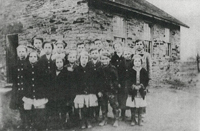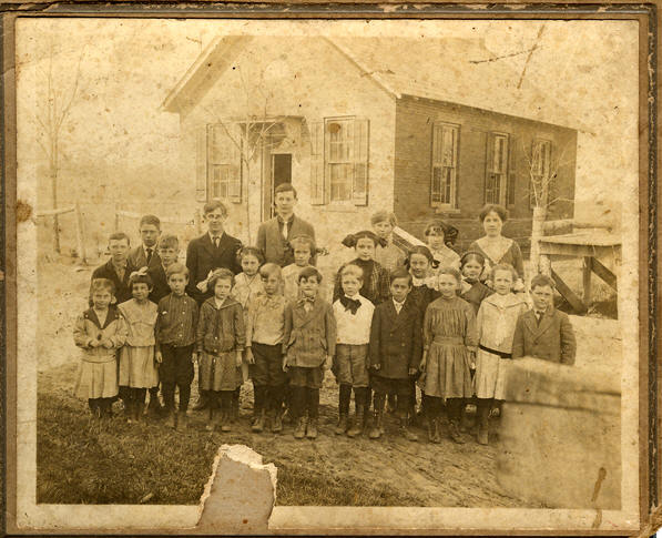 The earliest settlers made do by teaching children in a home, shed or any building until schoolhouses were built. The first schools in our community were primitive subscription schools erected by volunteer labor. Logs cut 16' or 18' lengths were used for the construction. Broad boards composed the roof. Each had a fireplace, a clapboard door. If there was a window it was probably greased paper to let in light. Students benches were fashioned from trees. A subscription of $1.00 to $3.50 per child was paid for a 3 month period. Teachers boarded with the families. Readers consisted of The New Testament or Old English Reader. Grammar was rarely taught.