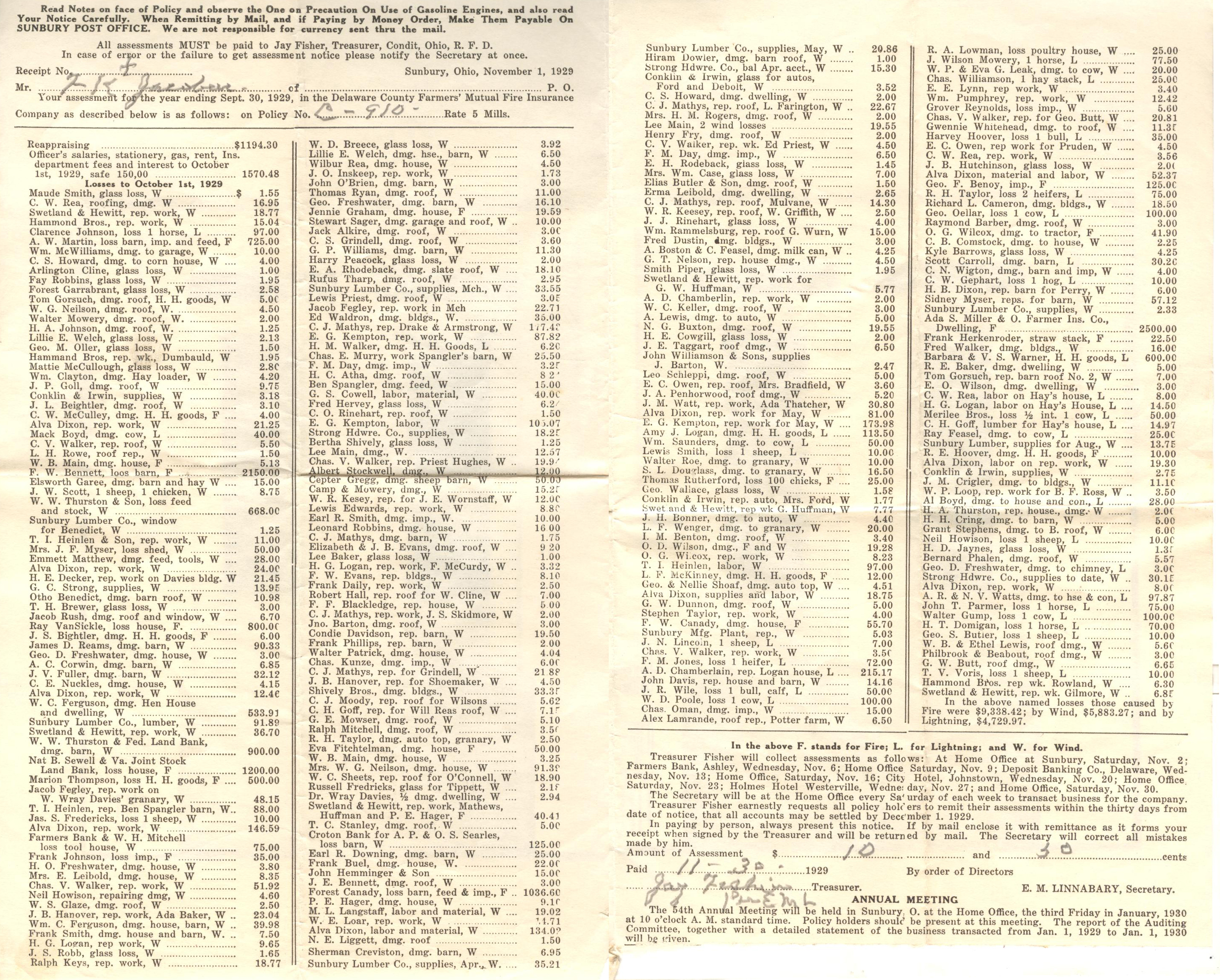 Delaware County Farmers' Mutual Fire Insurance November 1929