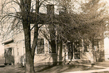 11 South Columbus Street The house encases two log cabins believed to be the homes of Lyman and Martha Myers Cook in one and his parents in the second cabin. This photo was about 1907 before the porch and dormer were added in late 1920-30. Boy in front is Bill Whitney, father of Polly Horn. |