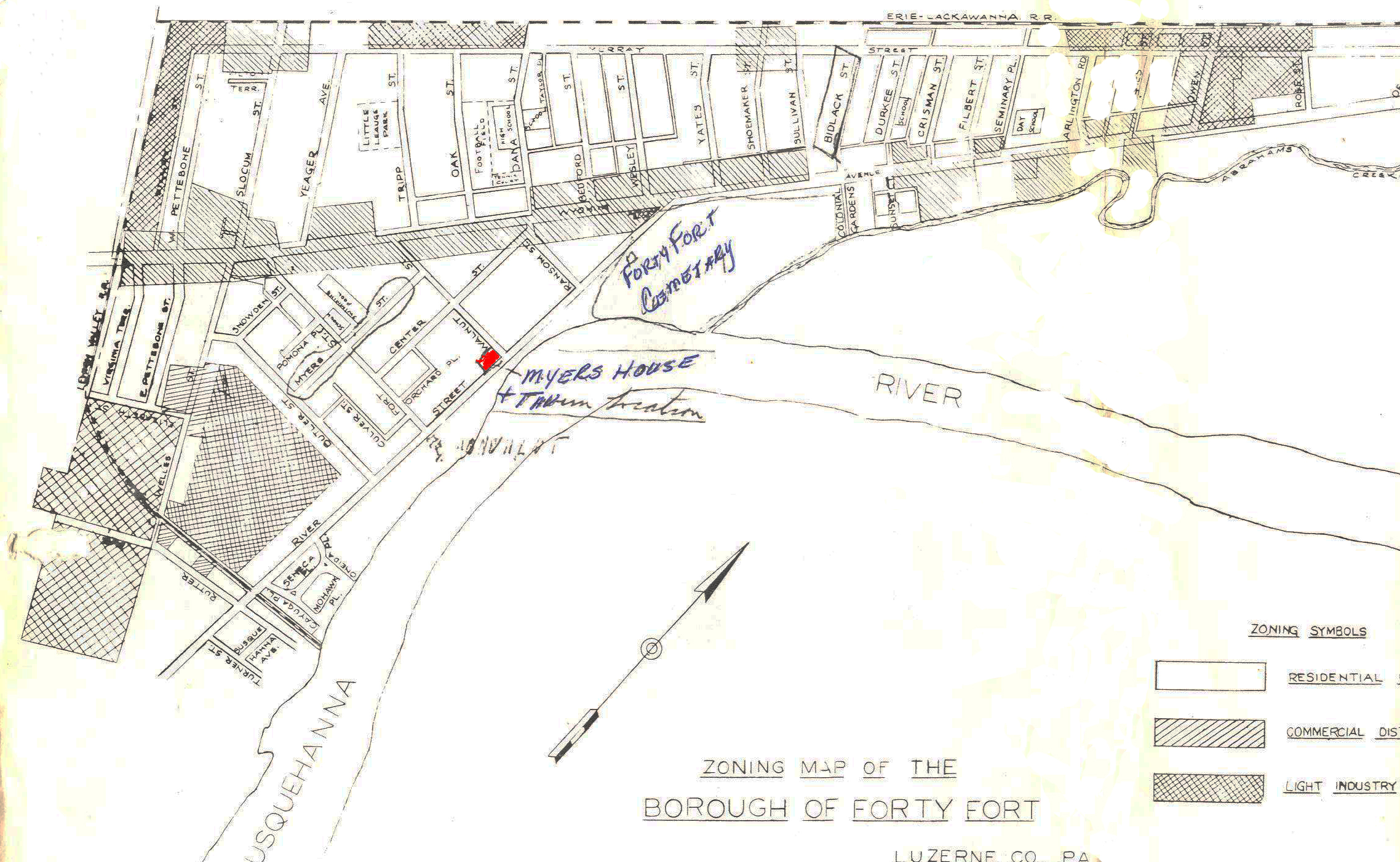 Forty Fort showing the location of Philip Myers Home and Tavern.