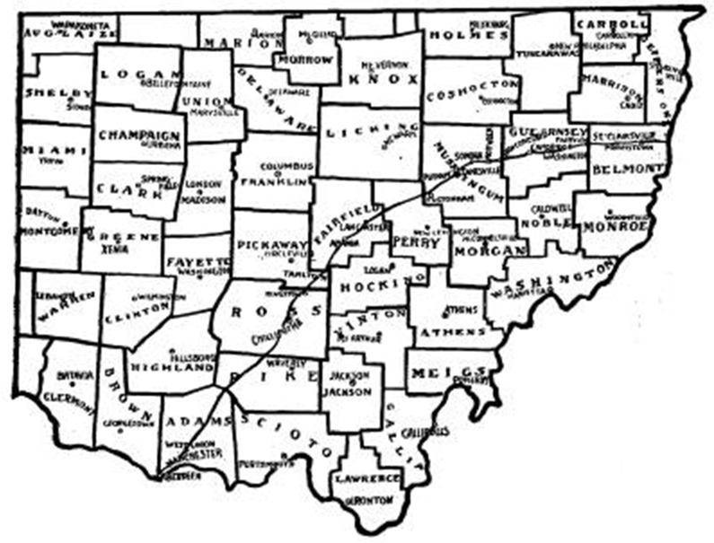 Zane's Trace was the trail from Wheeling through Zanesville - not really a road |