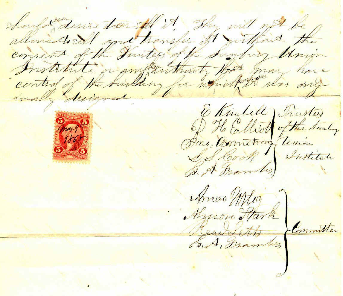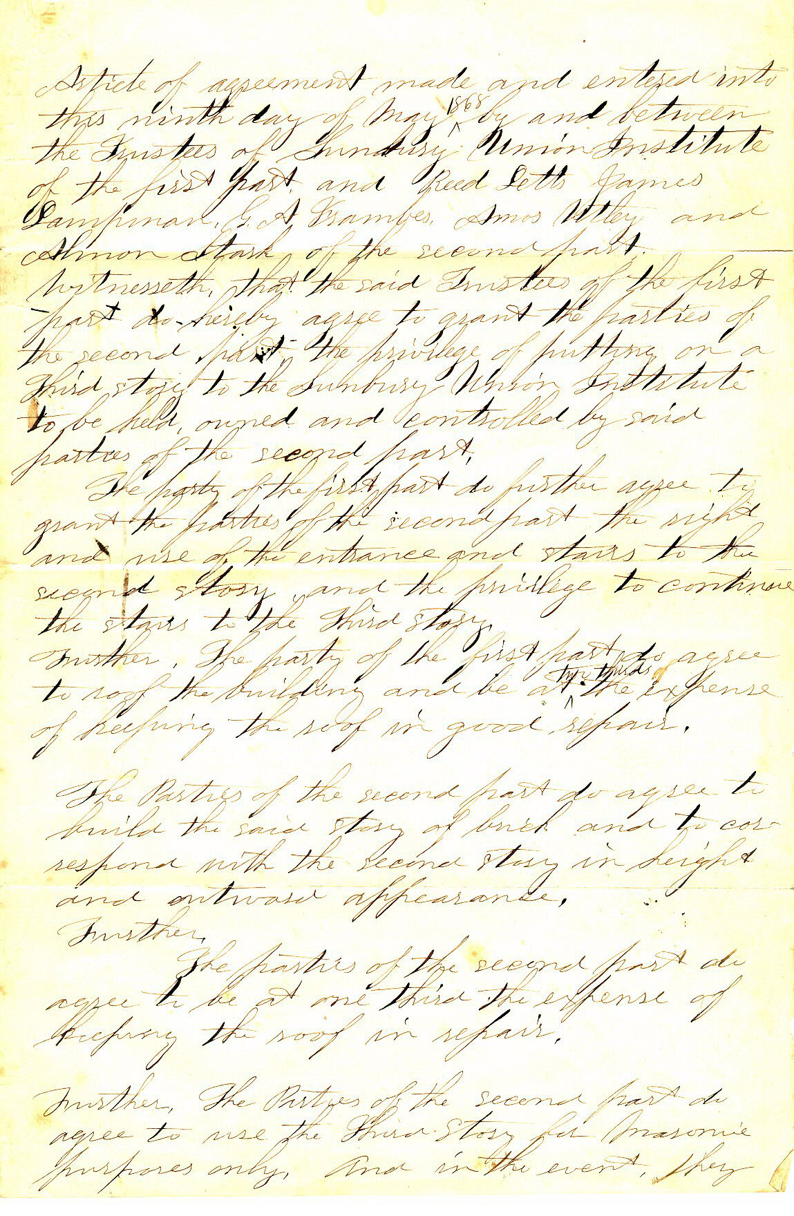 Agreement Between Masons and Sunbury Union Institute Printed Copy of Document