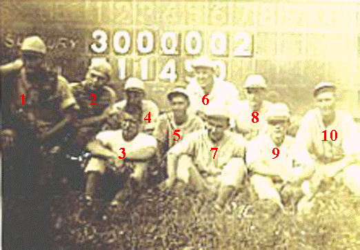 1 2 Cobb Farris, catcher; 3 Byron Hoke, pitcher; 4 ; 5 Doc Bricker, shortstop; 6 ; 7 Hugh strider, pitcher; 8 Bob Hoke, left field; 9 Bob Smith; 10 Howard Bricker, second base | ||||