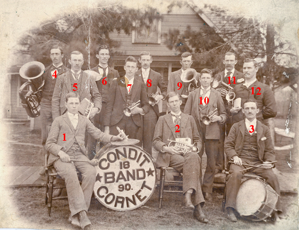 On the back of the photo are these names.  Trenton Potter, Luta Catchum,  Charles Van Kirk, Claud Perfect, Milfred Condit, Byrum Gorsuch, Leet Van Kirk, Harry Van Kirk, Charles Perfect, and Mr. Van Fleet.