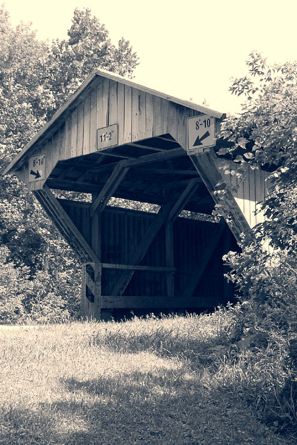When many of the settlers first came to this community they followed waterways north from the Ohio River to Franklinton (now Columbus). There some picked up Indian trails through the forest while others followed creeks. However the same waterways that led them to settlements were an impairment to life on the other side of the waterway. Baskins tells of two families settling on opposite sides of a river. The lady on the west side was very anxious to meet the lady on the east and they made arrangements to do so when the water would be down. Unfortunately on the day of the planned meeting, the water was swollen from recent rains and impossible to cross on foot so the first couple was about to return to their home when the second couple arrived in a wagon pulled by oxen. Not wishing to disappoint his wife, the man unhitched the oxen and rode one across the river, and when he reached the west bank, 'the lady, Europa-like' fearlessly sprang on the back of the other ox and they went back across the raging waters. When she concluded her visit, she returned the same way. Those with knowledge of building bridges were indeed welcomed into the settlements. Covered bridges were soon built across the many waterways connecting neighbors and surrounding towns. Louise Sheets (1892-1982) told of coming from Delaware by wagon over the corduroy road and the long bridge over Alum Creek to visit her grandparents who lived in Sunbury. The road made of trees lying perpendicular across the road where is ran over swampy land was bumpy, the bridge scary. In spite of the dreaded trip, she enjoyed visits to her grandparents and later lived in their house on North Columbus Street. Today only one of the many bridges remains in our county. The Chambers Road bridge was built across the Big Walnut Creek in 1874 by Everett S. Sherman using the Childs Truss form of construction. It is 36 feet in length with a 6.5 foot overhang at each end, 13 feet wide and 11 feet high with a metal roof, and sits on cut stone abutments. It has one span and a load limit of 8 tons. In 1957 the bridge was almost lost when it was hit by a truck. The bridge was repaired and restored by the county for traffic about 1983. Thanks to Baskin's "1880 History of Delaware County and Ohio" and an Auto Tour vignette by Maxine Longshore. Also thanks to notes from David Simmon's talk to the Big Walnut Area Historical Society and his photos of the Chambers Road Bridge which are in the Community Library collection. Janet MacKenzie took the current photos Chambers Road covered bridge is one of the hidden treasures featured on the Big Walnut Area Historical Society's Auto Tour on Sunday, October 5th. Participants will purchase tour booklets at the Myers Inn, 45 South Columbus Street in Sunbury between 1 and 4 p.m. The booklet has driving instructions to the historical landmarks and vignettes on the sites. The first 100 cars to complete the trip and return to the Myers Inn by 5 p.m. will receive a surprise. The Auto Tour, a part of the Heritage Day Celebration of the Historical Society, is part of the Big Walnut Ohio Bicentennial Celebration. |