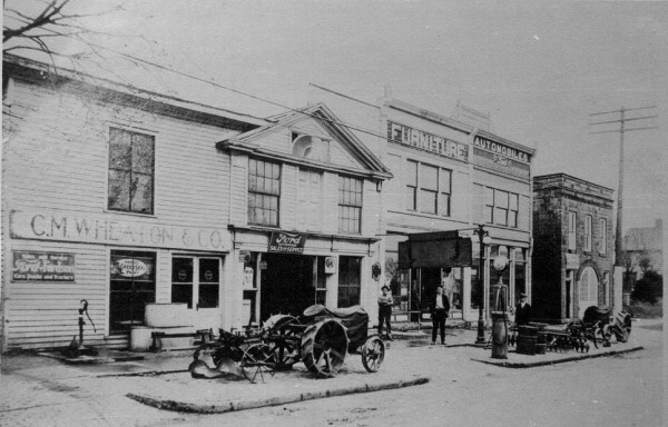available. Cars needed gasoline and service so Wheaton opened a 'filling station' just left of the furniture store