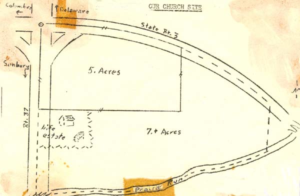 Circuit riders brought the first Methodism to our communities. A circuit had 12 preaching places over a 100 mile trek which the preacher covered every two weeks, stopping to preach at 6 places per week on a regular schedule. Services were often held on weekdays when preacher was in your community. Some circuits had 24 preaching places, covered 200 miles and 2 riders to service the large area. All the preaching places were organized into classes which were overseen by a Class Leader. The Class Leader held Sunday services in a home, kept the group informed of the circuit rider's schedule, visited the sick, etc. If the Class became too large to meet in a home, it was divided and those multiple classes formed a Society. Eventually the Society built a church. Alexander Cummins was the Delaware Circuit Rider from 1811-1812 and was paid $113.11 for his labor. Judge Benjamin Carpenter of Wilkes-Barre, Pennsylvania, purchased land north of future Sunbury in 1806. Documents in the courthouse show he was one of the Associate Judges of the Court of Common Pleas of Delaware County, Ohio, in 1809. Circuit riders used his barn to hold services. The barn burned in 1939 more about Judge Carpenter In 1838 the first Methodist Church was built on North Columbus Street next to the cemetery on land owned by Allen and Catherine McLane. The deed dated December 24,1842, states the Protestant Episcopal Church and the Methodist Episcopal Church of Berkshire Township, Delaware County, Ohio, paid $100 for the site of the Methodist Meeting House. the building was constructed for $1,500. It was a single rectangular structure with windows on each side and two doors in the front which opened into the vestibule with stairs leading up to a balcony and a door opened into the sanctuary. By 1899 it was apparent the church was in bad repair. By tearing down the old church, reusing the beams and using as much donated time, labor and materials as they could, the congregation built a new church valued of $5,000 for $3,500. Even Pastor Martin weaver donned overalls and worked with the carpenters. It is likely the second floor of the Town Hall was used as the place for worship as the building was built. The Aid Society of Ladies' Aid were busy raising money for the church and helping those in need. The Spinsters' Convention was one of many events during this time. The new church was dedicated October 6, 1901. Not only was it larger, it had stained glass windows, gas lights, a coal furnace, a large Sunday School room in the front which had folding doors into the sanctuary so it could be used for large services. At the time of dedication, there was a debt of $1800 owed on the building. Pledges after the service amounted to $1,230 and following the evening service the entire sum had been pledged. In 1906 the church was debt free. In 1910 a parsonage was added to the minister's salary of $1,000. The same year a piano replaced the pump organ. Two years later the church acquired a new addition, "the choir room" which was planned for the women was taken over by the men - a sore point for many years among the ladies. Many years later it was turned over to the teenagers. intersection. On January 27, 1960, Mary Ellen Miller offered the church of land extending from Prairie Run to the Route 3,and 37. Five acres were given by Russell and Mary Ellen miller and their son Paul. the remaining seven acres of the tract was purchased for $5,000. (Mrs. Sarah Giles had a life lease in the house on the property.) By December 1960 the congregation raised $2000 to go with the $3,000 grant from the Conference Board of Missions so the land was deeded to the church. Mrs. Giles died in the spring of 1964, so the church rented out the house. Also in 1960, Mr. and Mrs. Ted Forman gave the church a lot on Baughman Street for a new parsonage, freeing up the old one to me used as a parish house and to provide additional classrooms. The new parsonage was completed for $13,000 and opened on March 5,1961. A pot of left over sloppy joes triggered a chain reaction ending in the construction of a new church. |