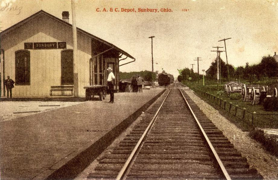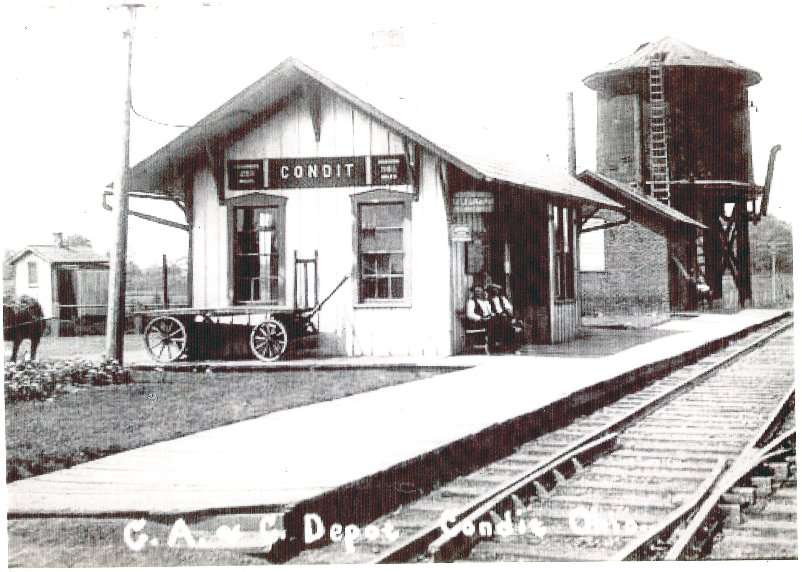 The railroad came through Trenton Township but missed the community of Condit. The railroad station was built south of Condit and the crossroads became know as Condit Station. In Memories of Early Sunbury, Louise Sedgwick wrote of her memories of the railroad coming to the community and the first passenger train in 1873. "I remember well when the first passenger train came over the road. I had measles and my Aunt Nett Armstrong wrapped me in a blanket and held me on her lap and it was a big time." Four passenger trains a day ran each way with an additional passenger train running south at 10:23 p.m. low passenger rates boosted railroad business in 1936. That year the Alf Landon Special went through the community. For years, people would go to the station to meet the train just to pass the time. Often political candidates road the train and gave speeches from the back of the train during its regular stop. Two young men decided to ride the cowcatcher on the front of the train from Centerburg to Condit but the train did not stop so they road all the way to Sunbury and were very embarrassed when many people were there to see the train arrive. The railroad not only made Columbus an easier trip, it served as mail carrier to the communities. Each train had a mail sorter to sort the mail after each stop. When this became to expensive, a post with a hook was install near the tracks so the men on the train could hang bags of mail over the hook without the train stopping. This stopped in 1941, during Governor Frank Lausche's term of office, when main was shipped and sorted on vans or mail buses. Now it is shipped by truck. Ohio State University sponsored Farmer's Institutes which were educational courses taught in the railroad cars while they sat on the siding. This brought the latest in agricultural and home economics to the rural communities. Extended courses were held in the Town Hall and called Sunbury Institute. Spurs from the main railroad went to Blue Grass Grove along High Street to Hartford Road and to Camp Clifton north of Sunbury on Old 3-C. These became summer resorts. Wild Bill's Wild West Show came into town and unloaded on the siding east of Granville Street to put on their show in the field at the bottom of the hill in the southeast coiner of Cherry and Morning Streets. In December, 1956, a train was chartered to take the Big Walnut High School band and fans to the Cleveland Browns football game in Cleveland where the band provided the half-time entertainment. Nestles, Landmark, Sunbury Mill, Carter Lumber, Cellar Lumber, Galena Shale Tile and Brick and the quarries were big users of the railroad. The railroad changed hands many times with Pennsylvania Railroad the longest owner until it was finally closed by Amtrak in 1984 - 101 years after the first passenger train. |