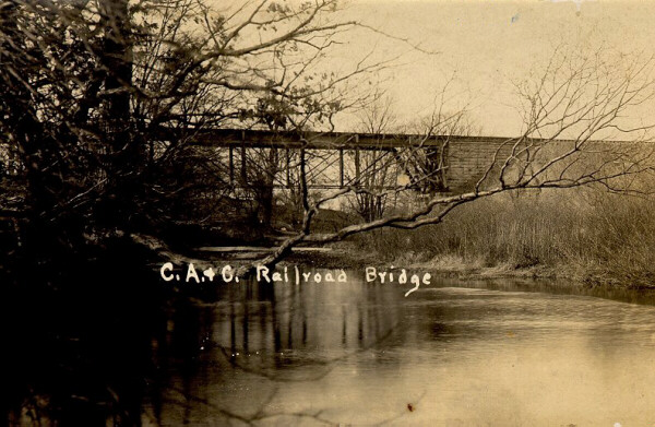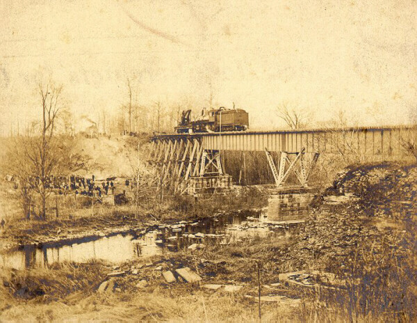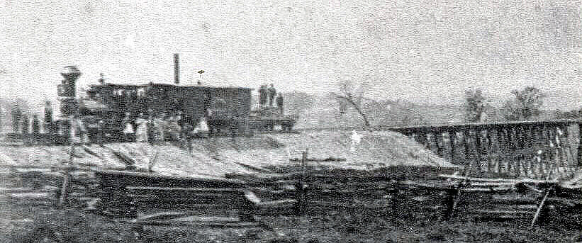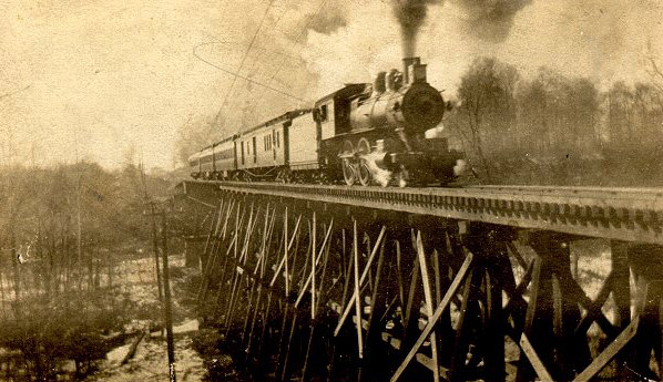 First passenger train near trestle over Little Walnut Creek in Galena |
