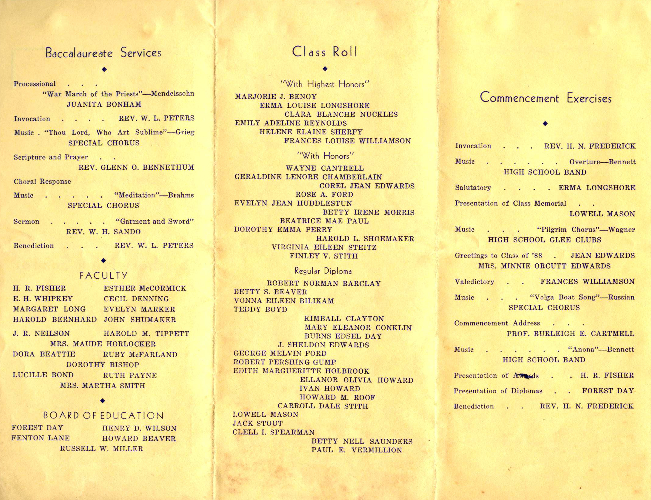 1938 Baccalaureate and Commencement Program