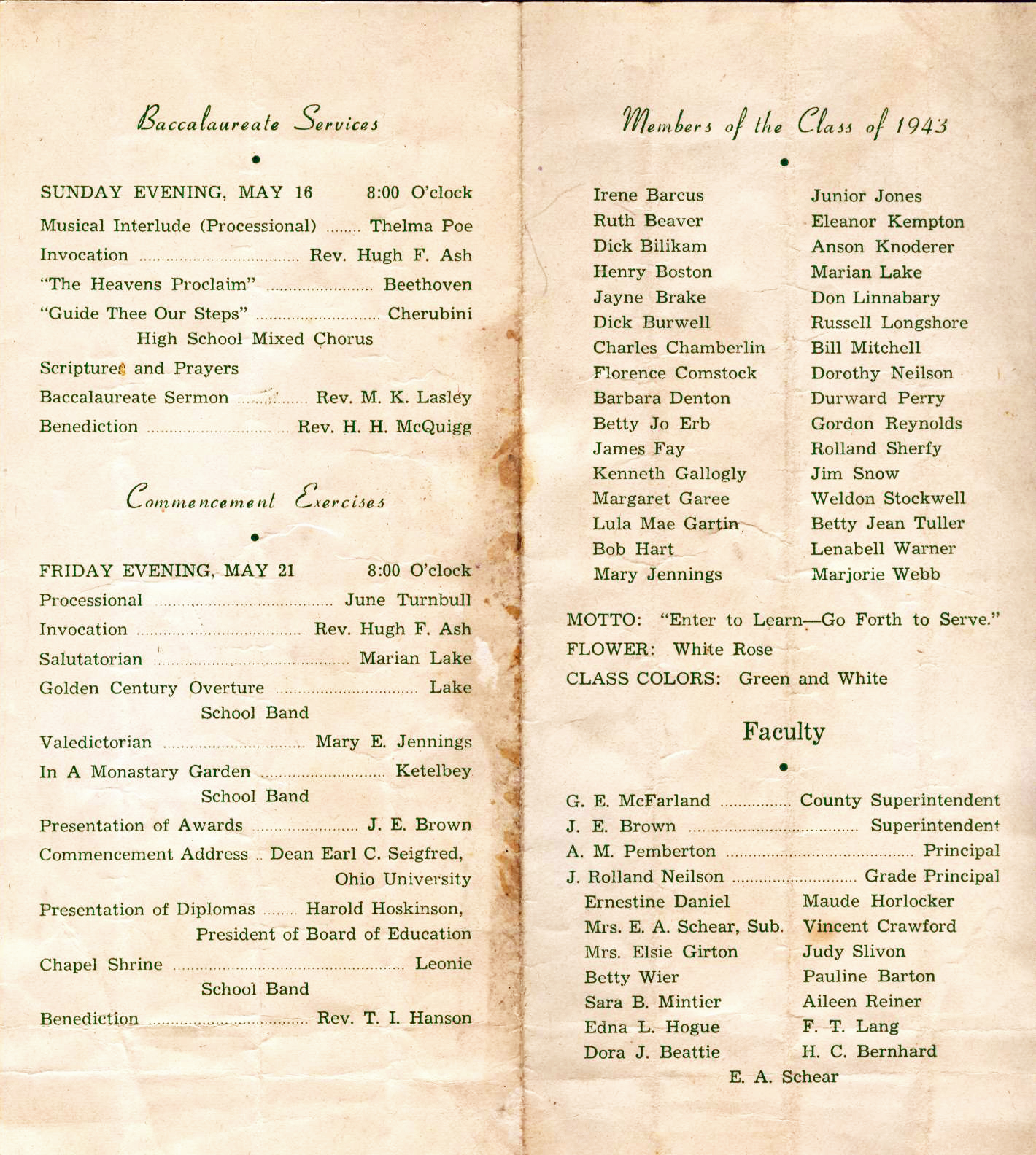 1943 Senior Graduation Activities "Enter to Learn - Go Forth to Serve"