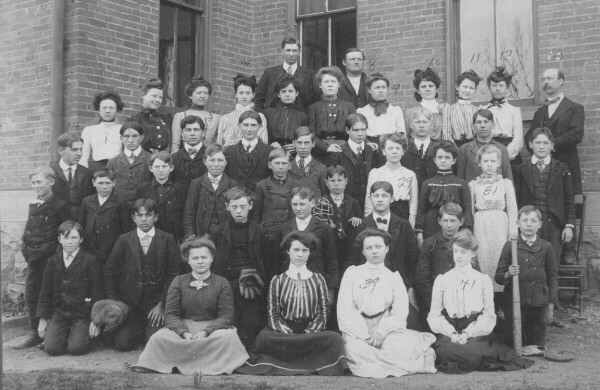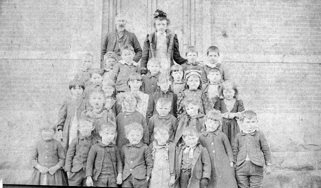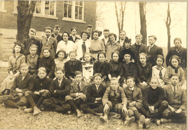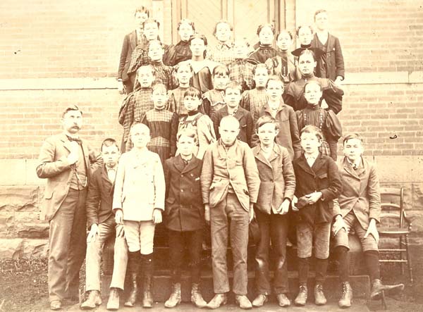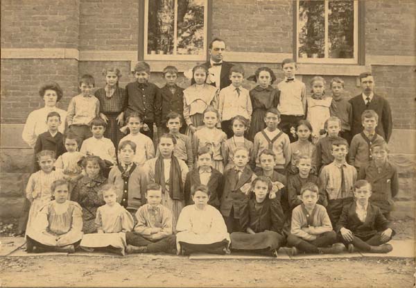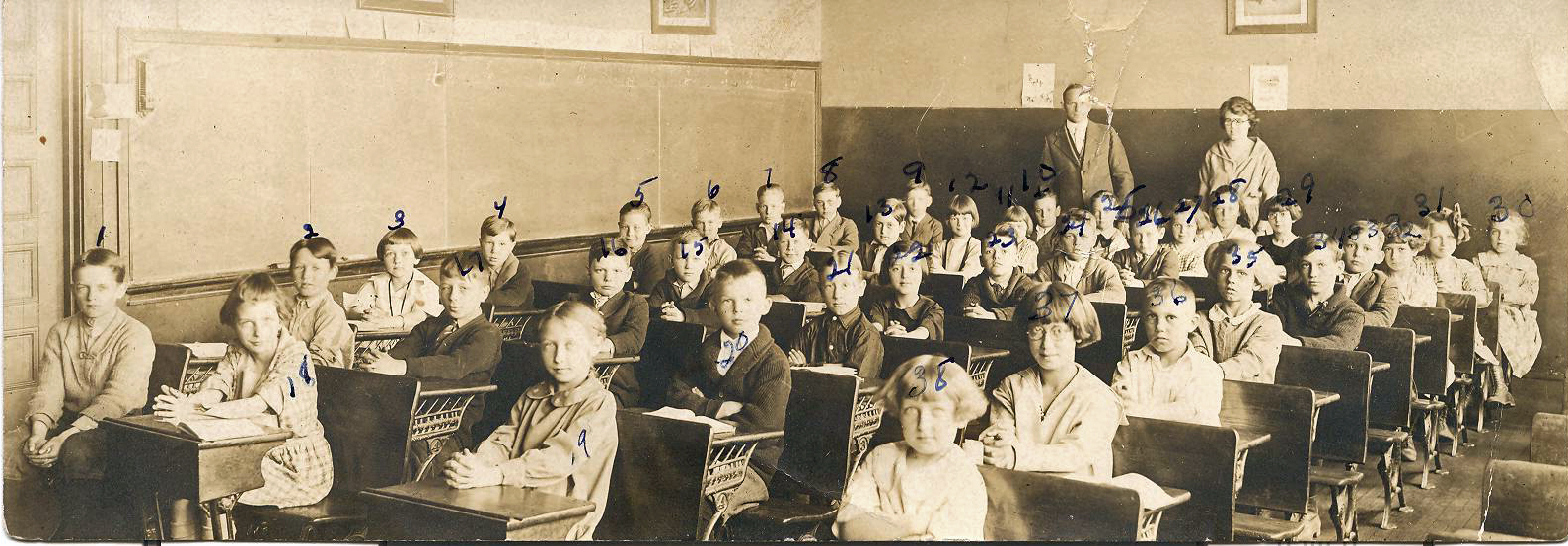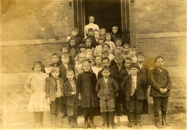 had a very good cement walk leading to Harrison Street with a beautiful pivet hedge lining the walk. Five rooms on the first floor housed the first six grades, library and office. Primary grades (1st and