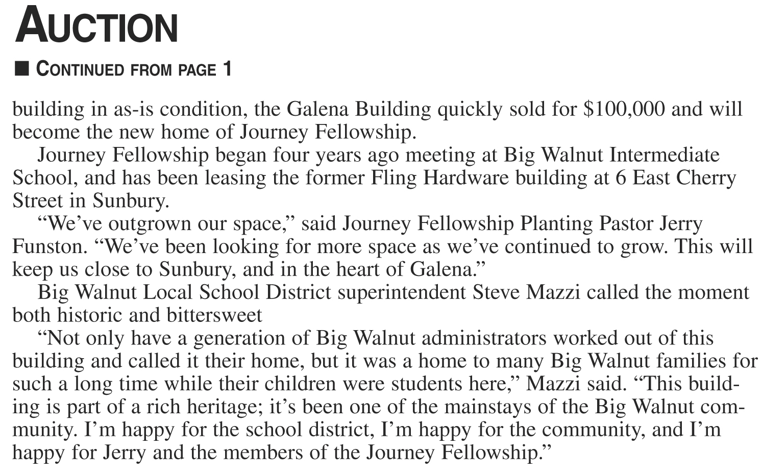 Galena School Building Sold . . . .