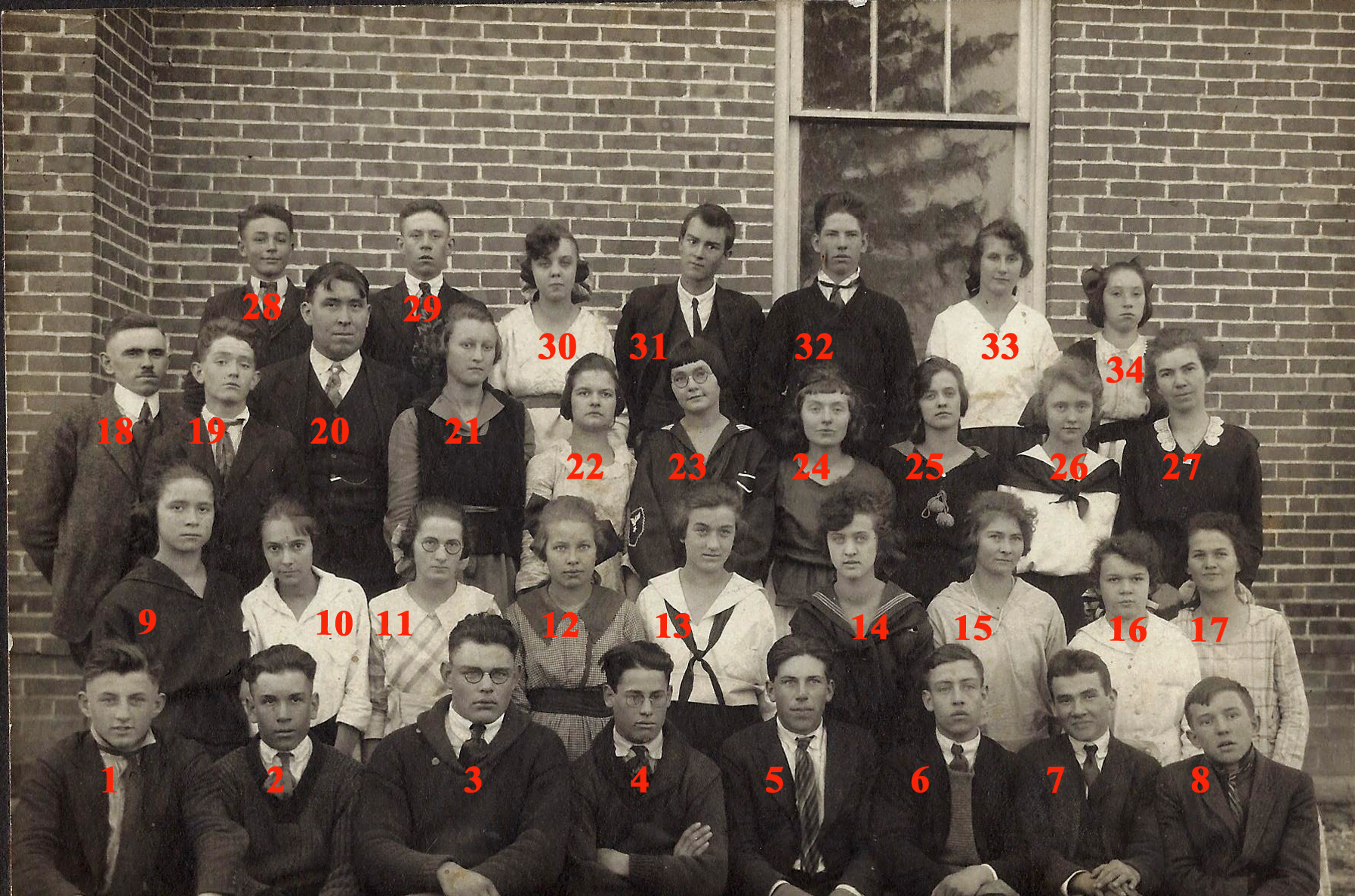 Front Rows left to right: 1. , 2. Fred Green, 3. , 4. , 5. , 6. , 7. , 8. Second Row left to right: 9. , 10. , 11. , 12. , 13. , 14. , 15. , 16. , 17. Third Row left to right: 18. , 19. , 20. , 21. , 22. , 23. , 24. , 25. , 26. , 27. , Back Row left to right: 28. , 29. , 30. , 31. , 32. , 33. , 34. . If you know any of these students or the year the photo was taken, please Contact us |