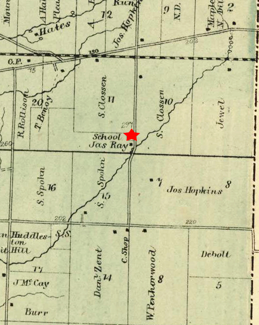 There are many schools marked on the 1866 Porter Map, but this one has the right families living near it. |