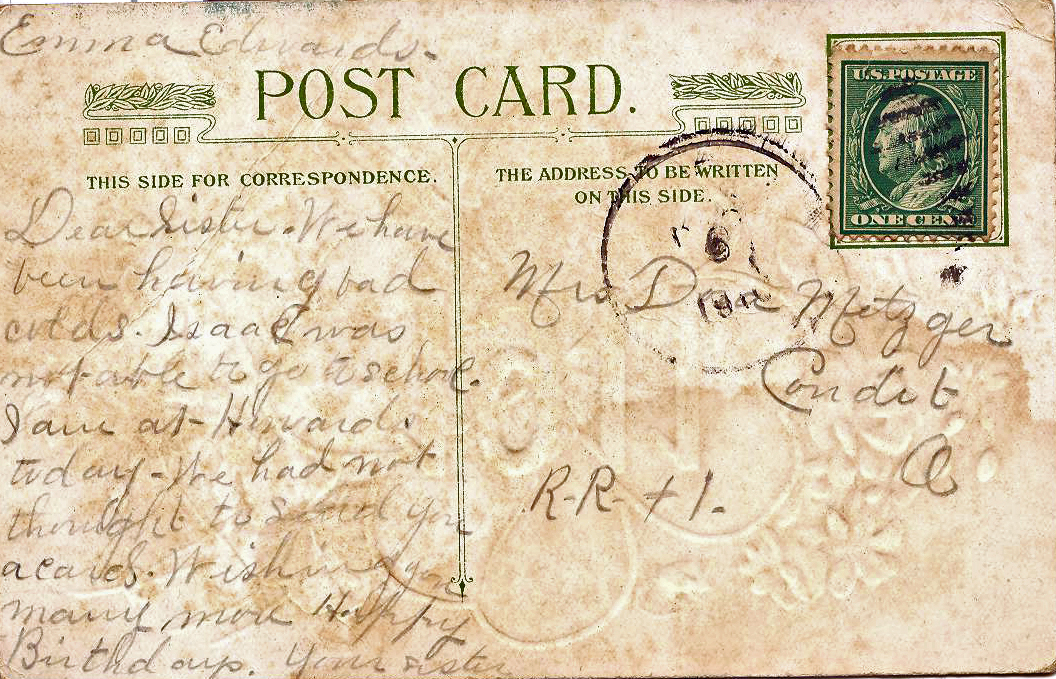 Ohio. Dora married James Metzger of Porter Township, Delaware Co.,