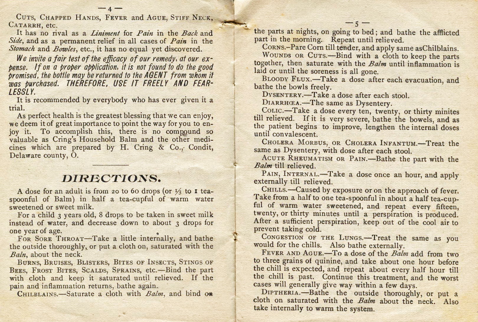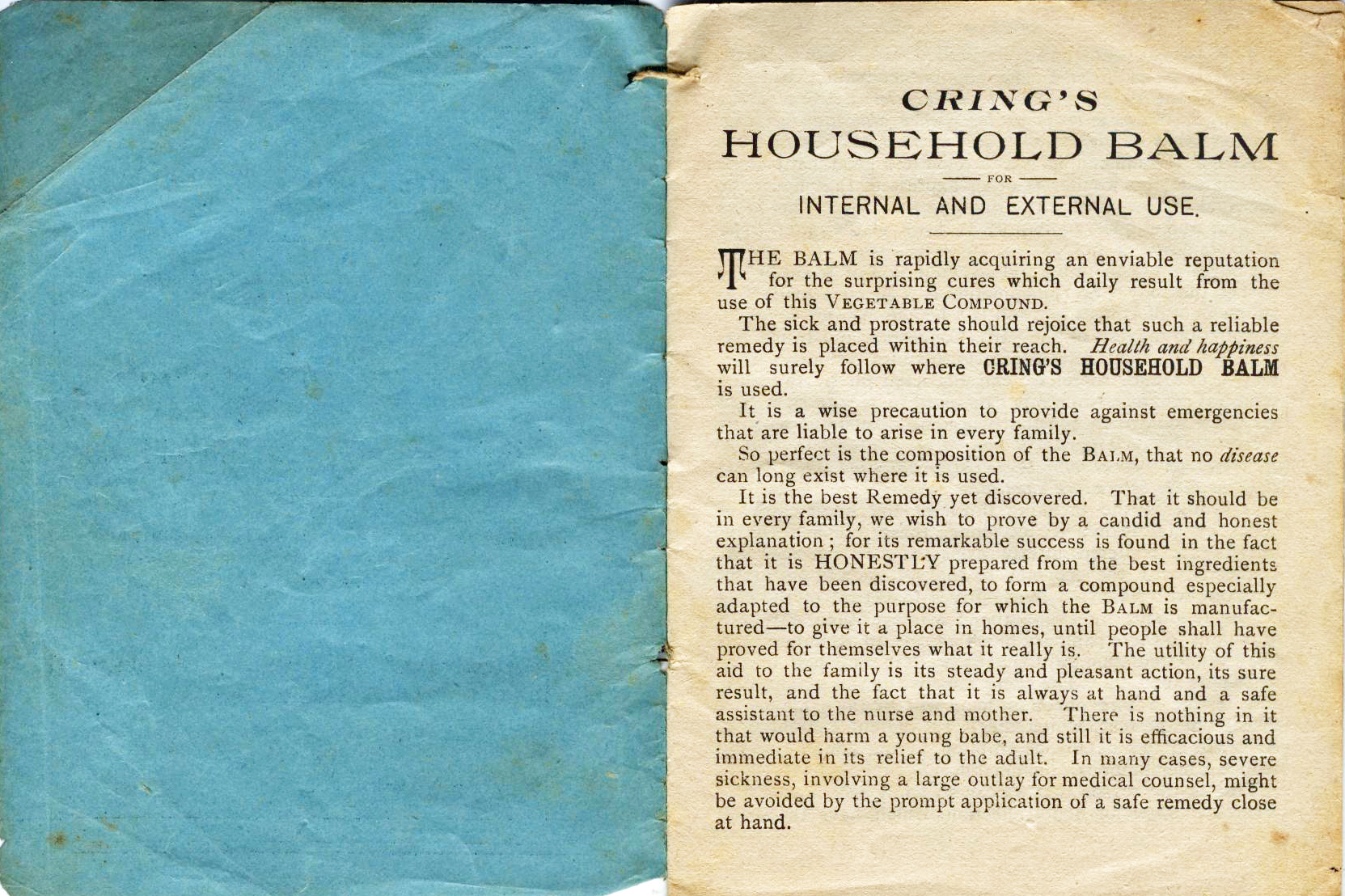 manner to the uses and virtues of Cring's Household Balm. |