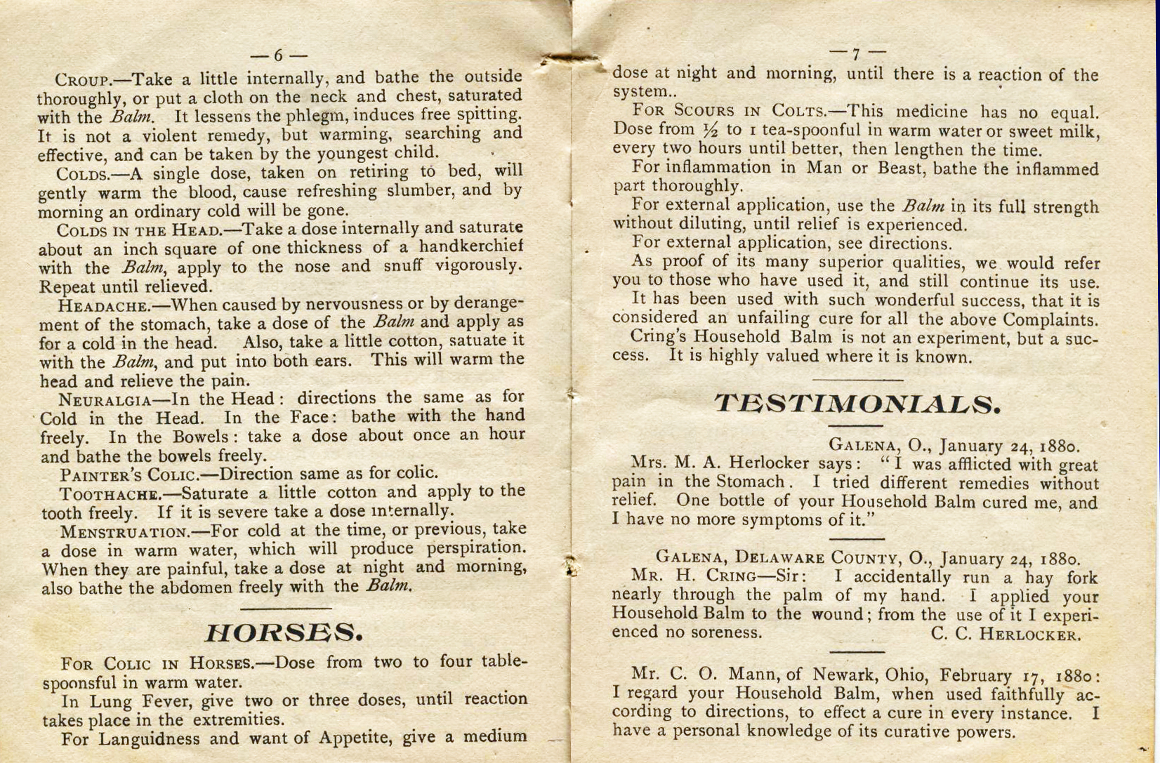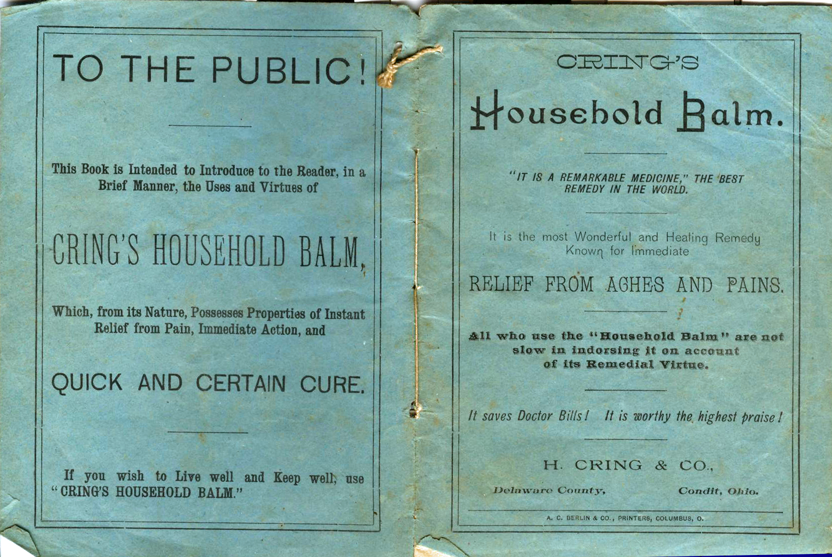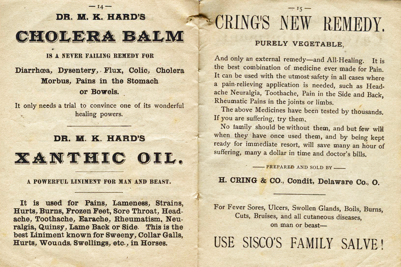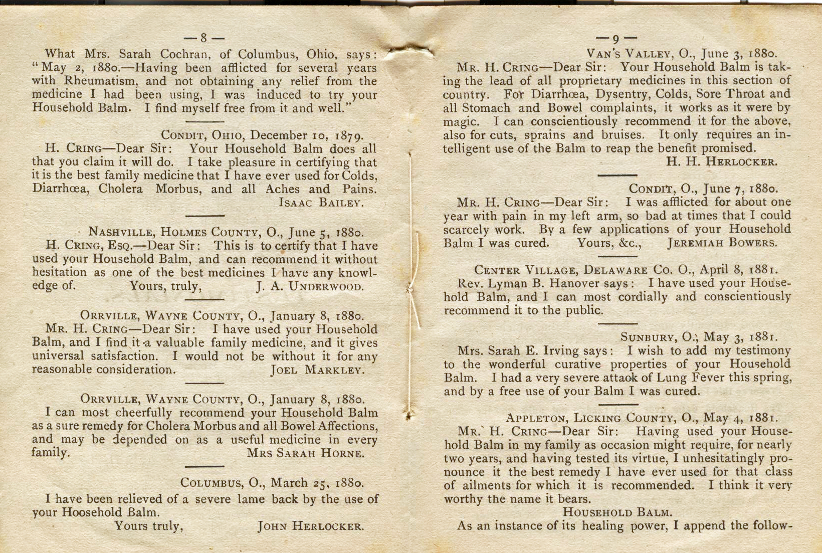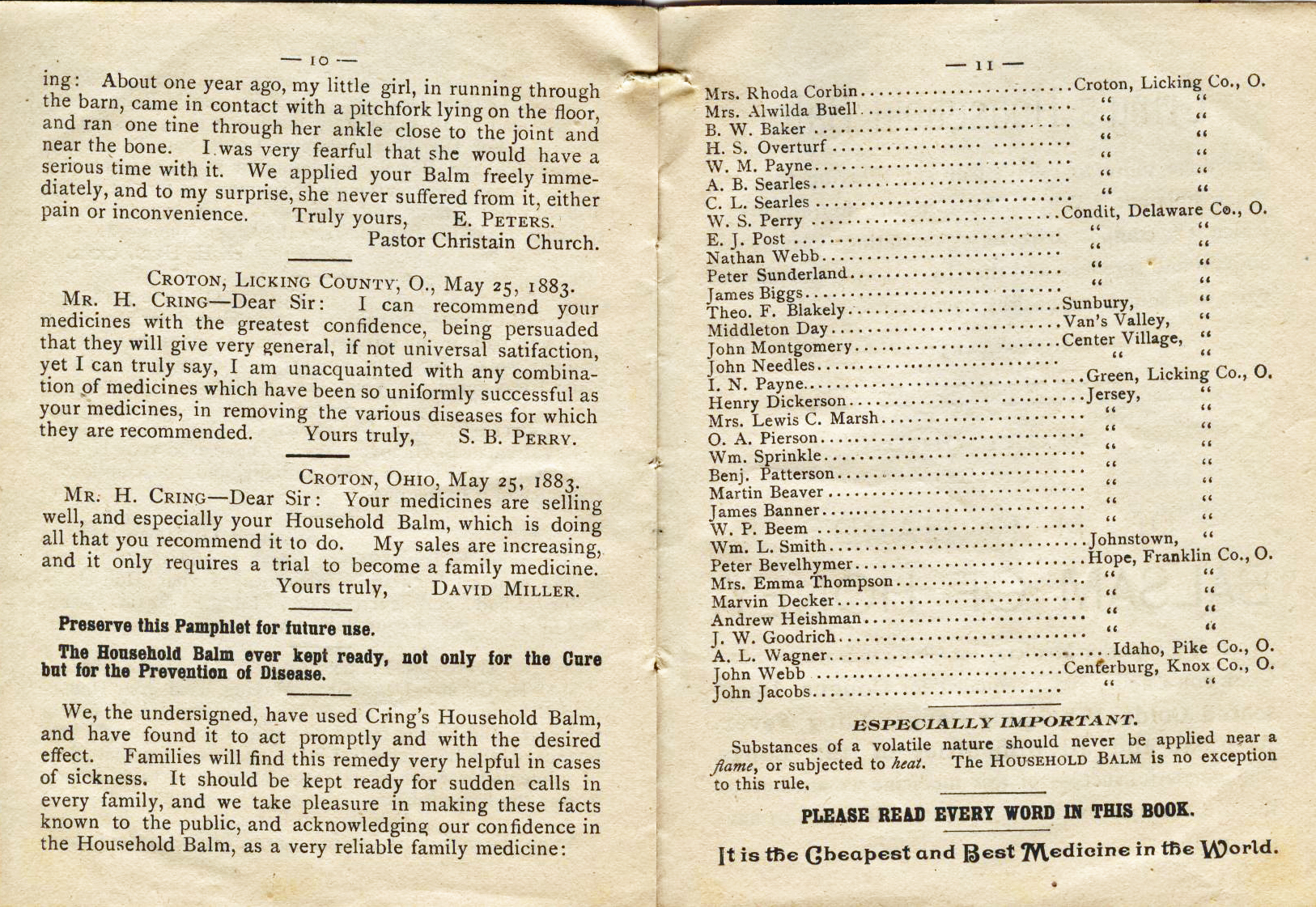 throughout central Ohio selling his balm as well as Cholera Balm,