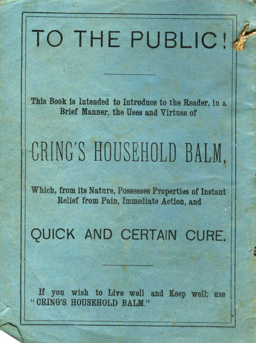 storekeeper, and the inventor of Cring's Household Balm.