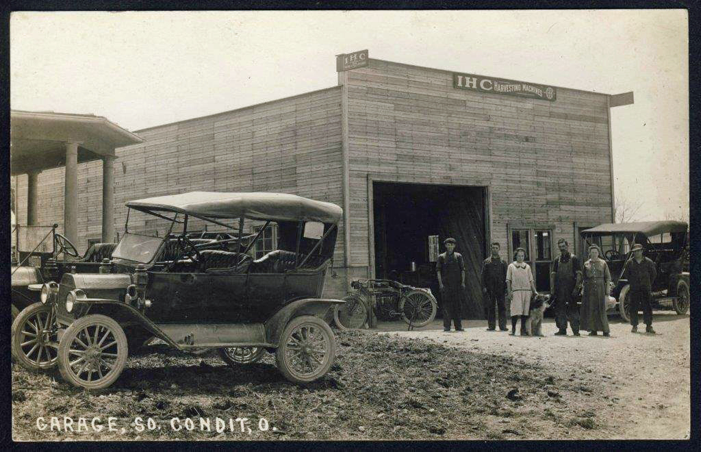 Jeff Sellers shared this postcard photo of an International Harvester Company in South Condit. Larry DeWitt thought the house was east of the South Condit Store with the barn behind it. The man second from the left seems to be missing a hand which corresponds to a DeWitt family member who lost his hand in a farming accident. The girl in the white dress could be Riley and Elma (Perfect) DeWitt's daughter, Esther DeWitt (1901-1983) who later married Sidney Boudinot. | ||||||