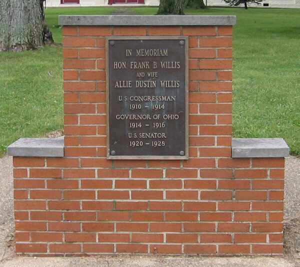 In October 1932, the Frank B. Willis High School, at 74 West William Street in Delaware, was dedicated.  Dr. W. O. Thompson, president emeritus of Ohio State University gave the dedicatory address.  Former secretary and aid to Willis, Charles Jones, addressed the group as the late Senator's daughter, Helen, unveiled the bronze plaque bearing the likeness of the Senator and a motto - "Industry to produce, thrift to save, optimism to cheer, patriotism to exalt, honesty to live by, firm faith to die by."