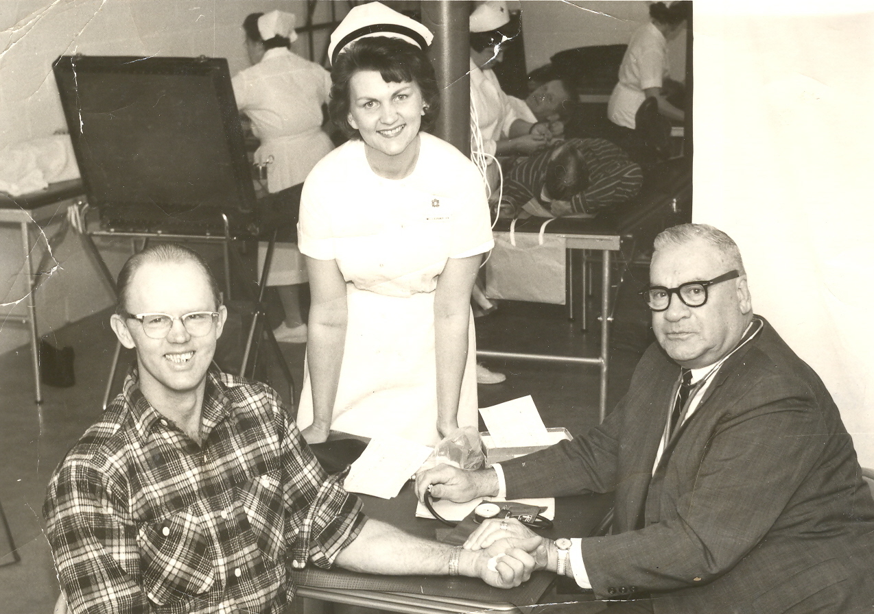 watches Dr. L. Ihle taking physical of Charlie Clark in 1965 Bloodmobile in Masonic Lodge 1965 |