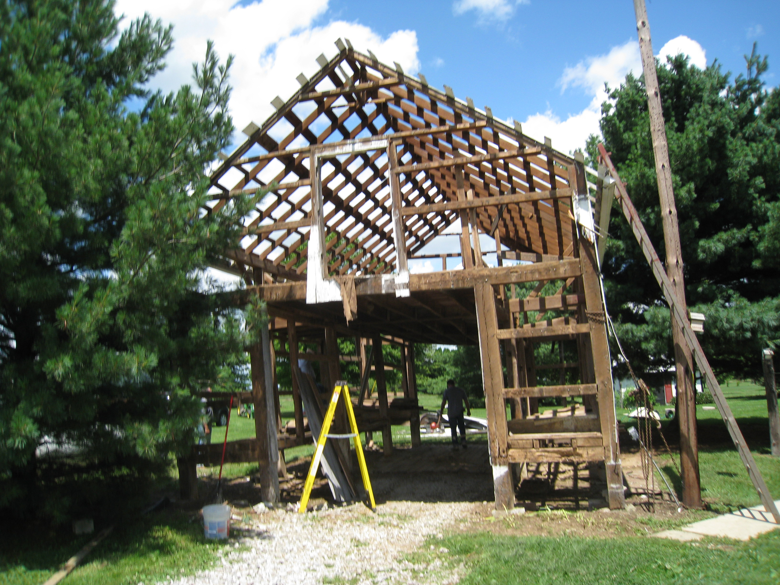 Beam and supports placed for the new barn |