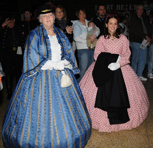 Linda Paul as Annie (Hageman) Rosecrans and Brittney Snow as one of Rosecrans' five children attending the Delaware County Bicentennial Founders' Day Celebration in February |