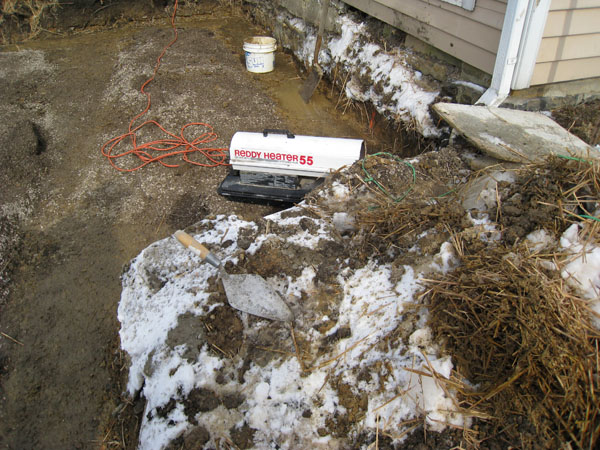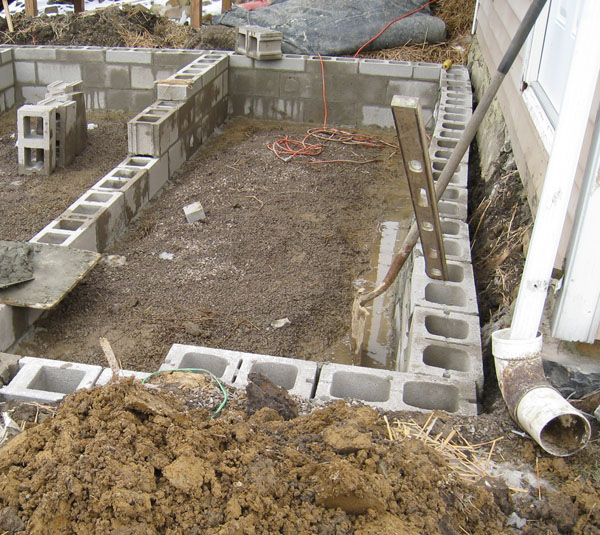Rest of Dirt out of hole | Thaw Dirt to Move Downspout | Block Walls | ||